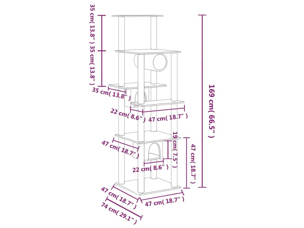 - Všestranná věž pro kočky: Víceúrovňový nábytek pro kočky je navržen se 2 domečky, 1 tunelem a plošinami, které poskytují kočkám ideální místo pro šplhání, sezení, škrábání, schovávání se a také k odpočinku.
