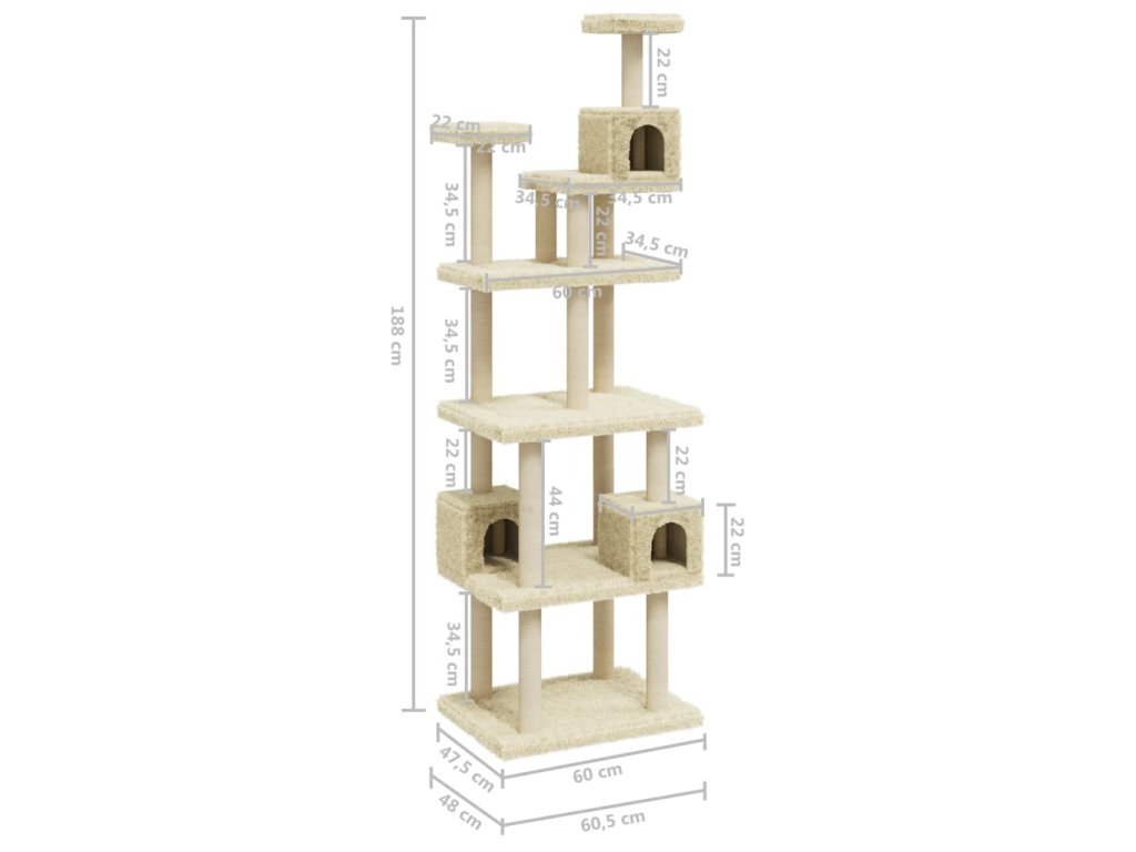 Škrabadlo pro kočky se sisalovými sloupky krémové 188 cm 171488