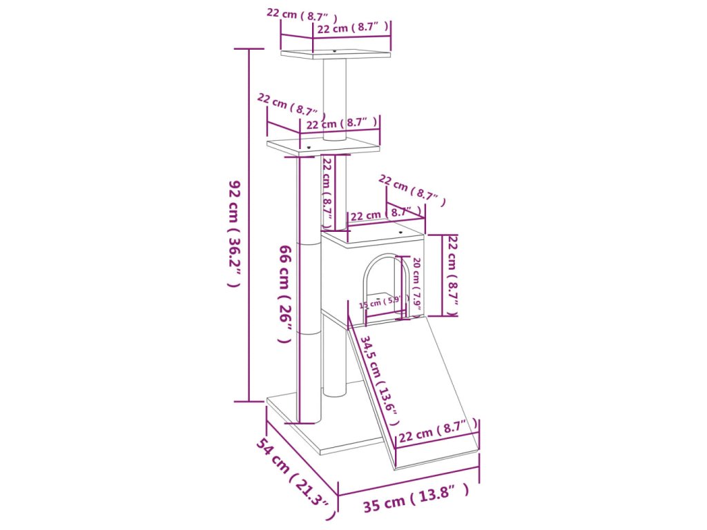 Vaši chlupatí kamarádi si mohou na tomto sisalovým provázkem obaleném škrabadlu brousit své drápky, což jim umožňuje vybít si své přirozené škrabací instinkty. Navíc si užijí spoustu zábavy, až se po kočičím stromě budou navzájem honit nahoru a dolů. Jakmile se do sytosti vyřádí, zamilují si vaši malí kamarádi odpočinek na vyšších plošinách, odkud budou mít krásný rozhled. Mohou se také ukrýt v útulném domečku a zdřímnout si v něm nebo se prospat v pohodlném plyšovém pelíšku. V dolní části se nachází rampa, po které mohou vylézt.