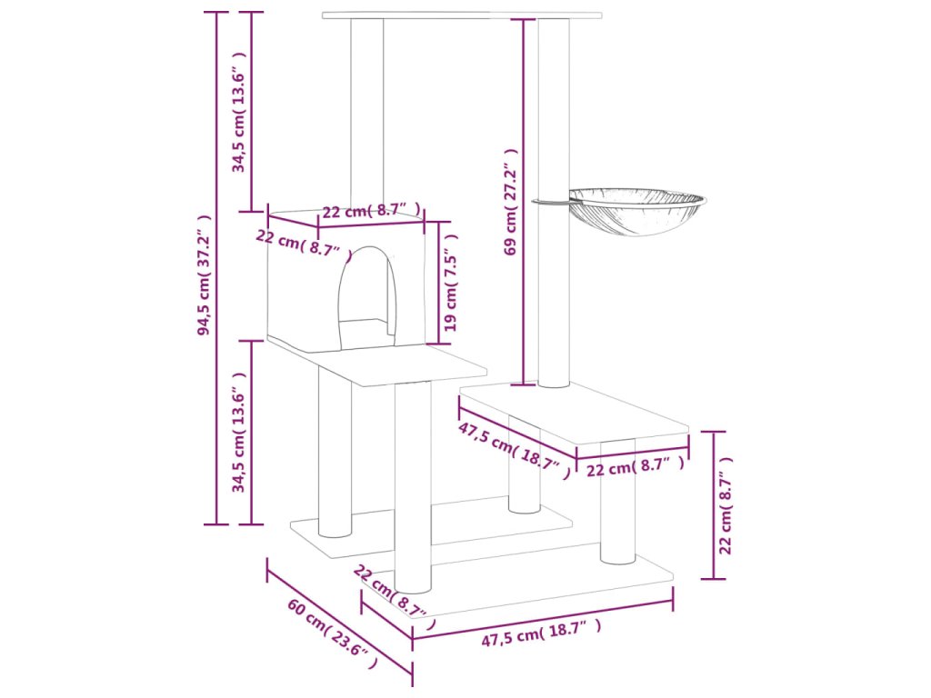 - Všestranná věž pro kočky: Víceúrovňový nábytek pro kočky je navržen s 1 domečkem, 1 hamakou a plošinami, které poskytují kočkám ideální místo pro šplhání, sezení, škrábání, schovávání se a také k odpočinku.