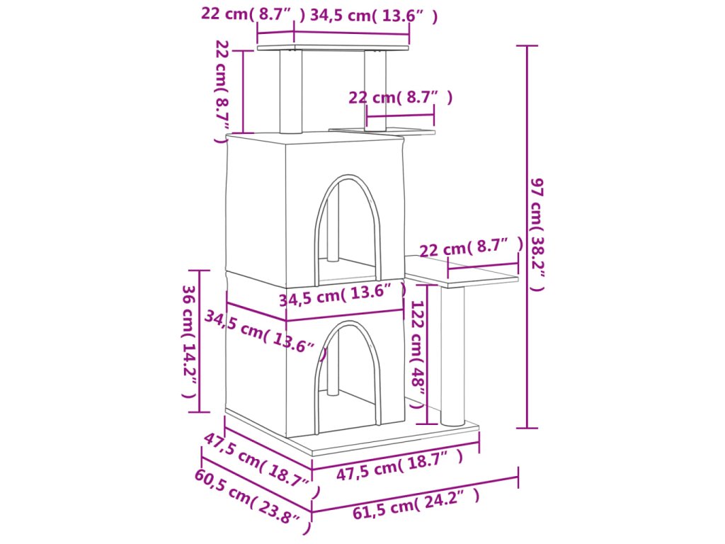 - Všestranná věž pro kočky: Víceúrovňový nábytek pro kočky je navržen se 2 domečky a plošinami, které poskytují kočkám ideální místo pro šplhání, sezení, škrábání, schovávání se a také k odpočinku.