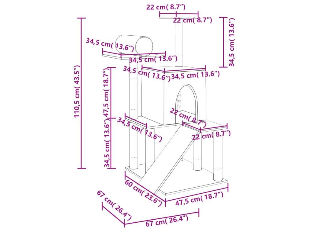 - Všestranná věž pro kočky: Víceúrovňový nábytek pro kočky je navržen s domečkem, žebříkem, tunelem a plošinami, které poskytují kočkám ideální místo pro šplhání, sezení, škrábání, schovávání se a také k odpočinku.