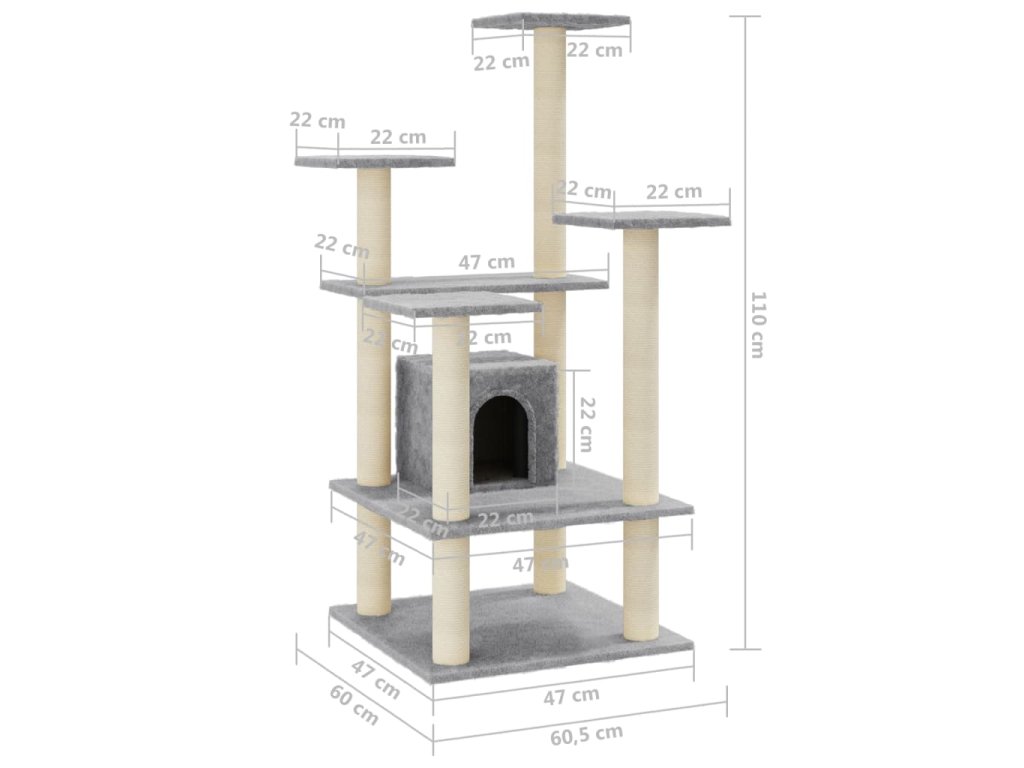 Škrabadlo pro kočky se sisalovými sloupky světle šedé 110 cm 171480