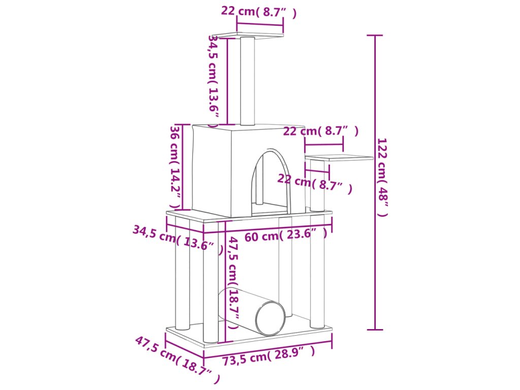 - Všestranná věž pro kočky: Víceúrovňový nábytek pro kočky je navržen s domečkem, tunelem a plošinami, které poskytují kočkám ideální místo pro šplhání, sezení, škrábání, schovávání se a také k odpočinku.