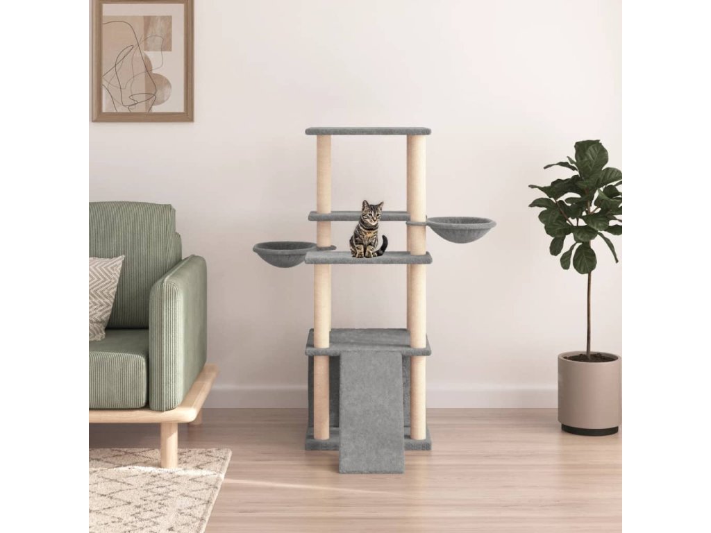 Škrabadlo pro kočky se sisalovými sloupky světle šedé 133 cm 171757