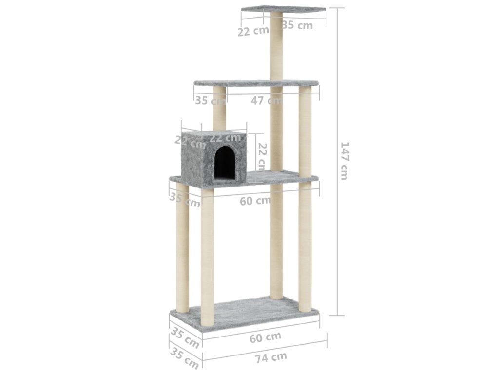 Škrabadlo pro kočky se sisalovými sloupky světle šedé 147 cm 171477