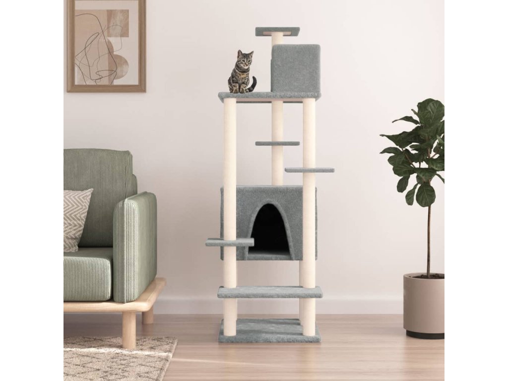 Škrabadlo pro kočky se sisalovými sloupky světle šedé 154 cm 171772
