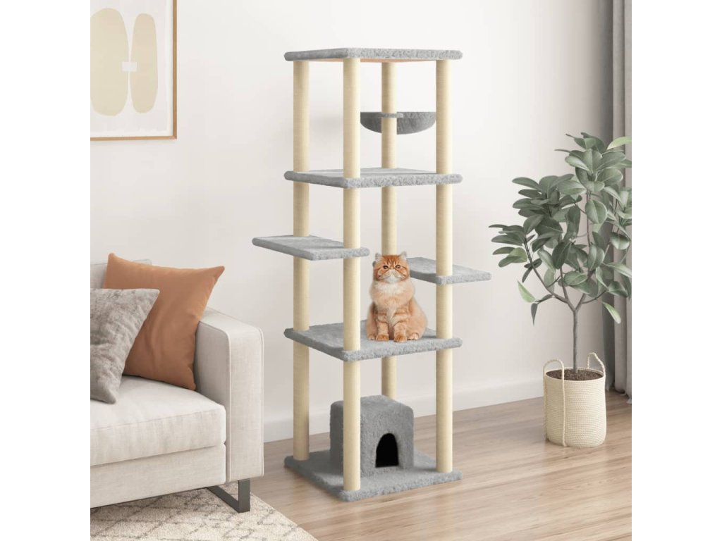 Škrabadlo pro kočky se sisalovými sloupky světle šedé 154 cm 172056
