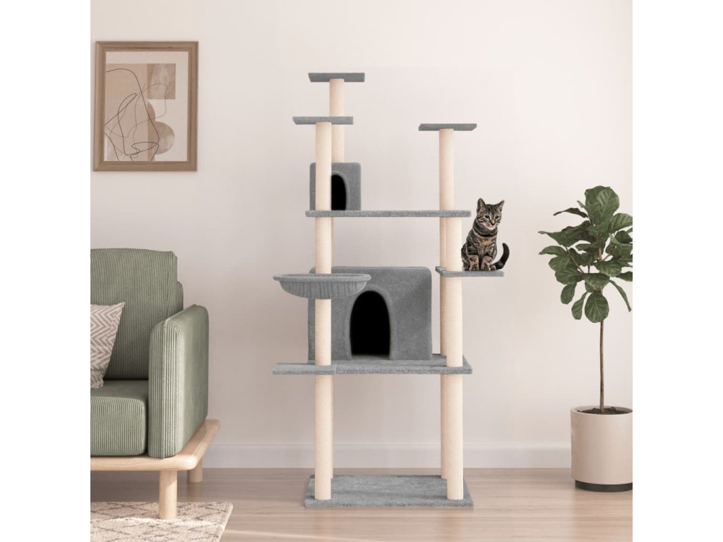 Škrabadlo pro kočky se sisalovými sloupky světle šedé 166 cm 171724