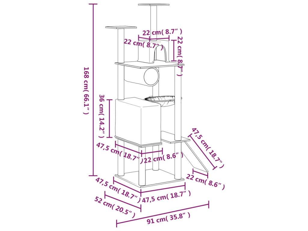 - Všestranná věž pro kočky: Víceúrovňový nábytek pro kočky je navržen se 2 domečky, 1 hamakou, 1 tunelem, 1 žebříkem a plošinami, které poskytují kočkám ideální místo pro šplhání, sezení, škrábání, schovávání se a také k odpočinku.