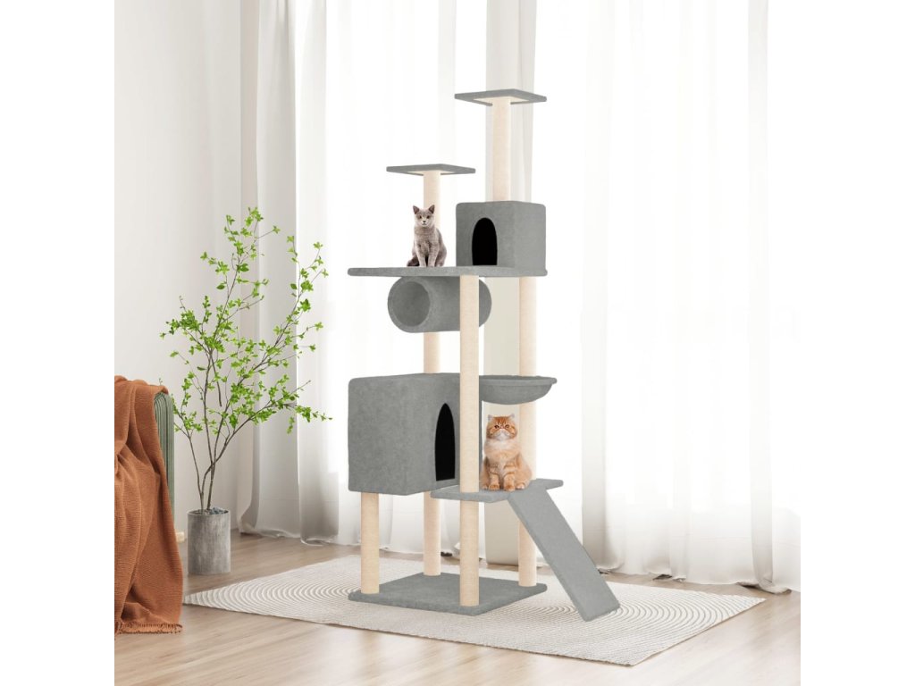 Škrabadlo pro kočky se sisalovými sloupky světle šedé 168 cm 171700