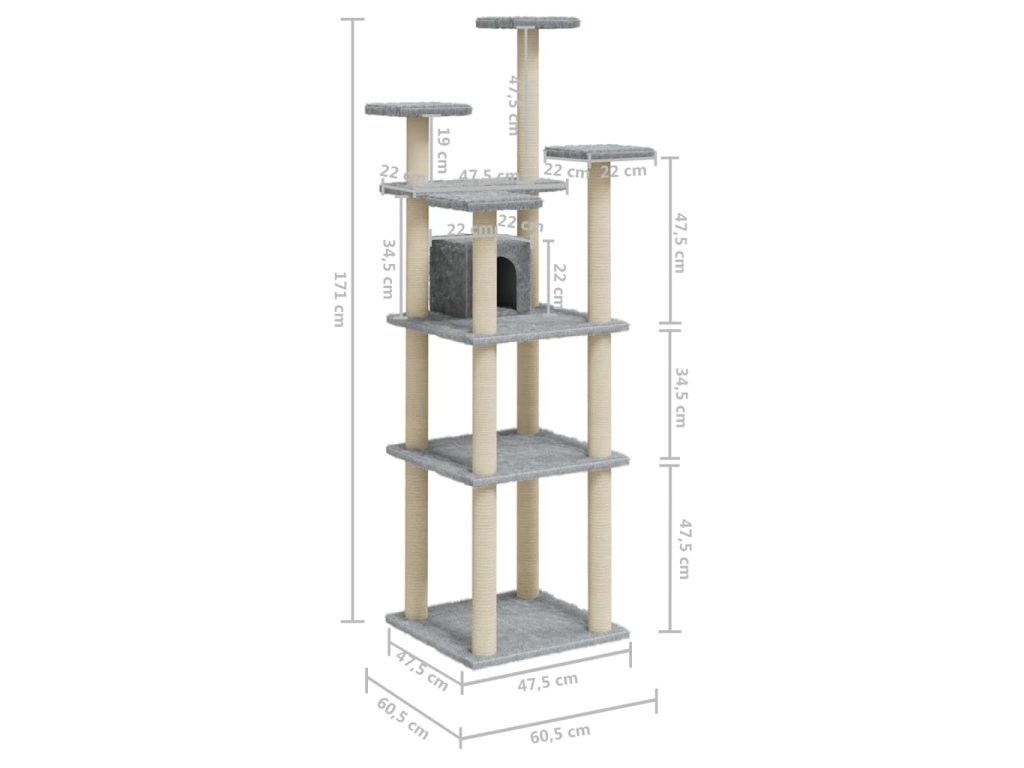 Škrabadlo pro kočky se sisalovými sloupky světle šedé 171 cm 171486