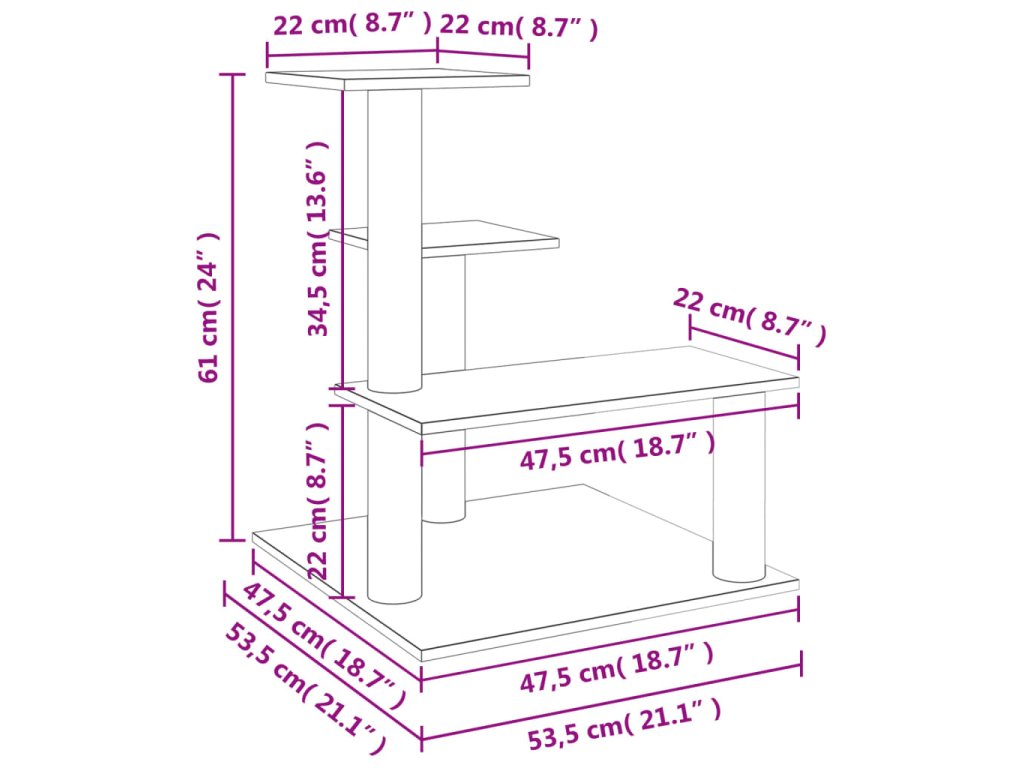 - Všestranná kočičí věž: Víceúrovňový nábytek pro kočky je navržen s plošinami, které poskytují kočkám ideální místo pro šplhání, sezení, škrábání, schovávání se a také k odpočinku.