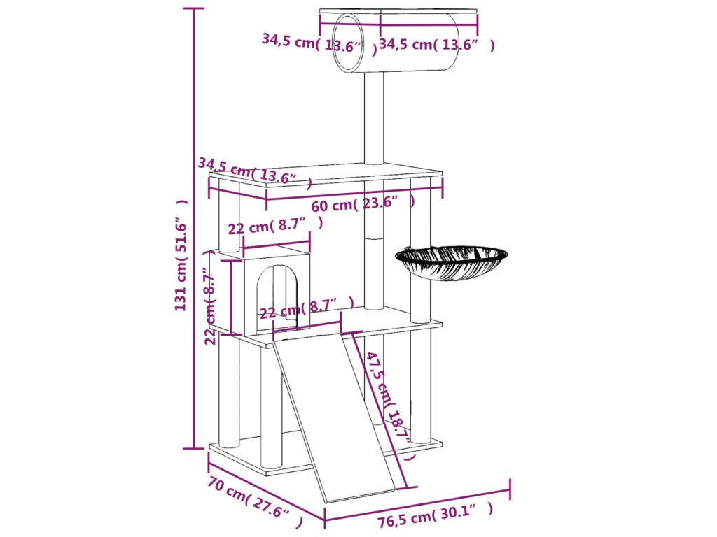 - Všestranná věž pro kočky: Víceúrovňový nábytek pro kočky je navržen s 1 domečkem, 1 hamakou, 1 tunelem, 1 žebříkem a plošinami, které poskytují kočkám ideální místo pro šplhání, sezení, škrábání, schovávání se a také k odpočinku.