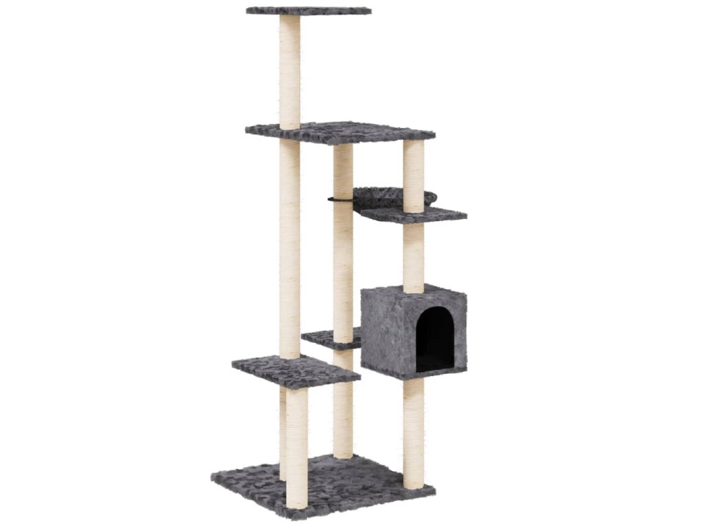 Škrabadlo pro kočky se sisalovými sloupky tmavě šedé 142 cm 171593
