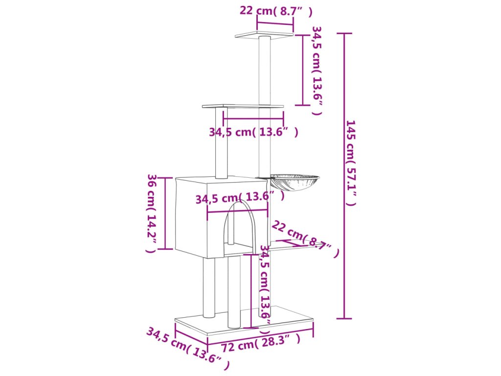 - Všestranná věž pro kočky: Víceúrovňový nábytek pro kočky je navržen s domečkem, košem a plošinami, které poskytují kočkám ideální místo pro šplhání, sezení, škrábání, schovávání se a také k odpočinku.