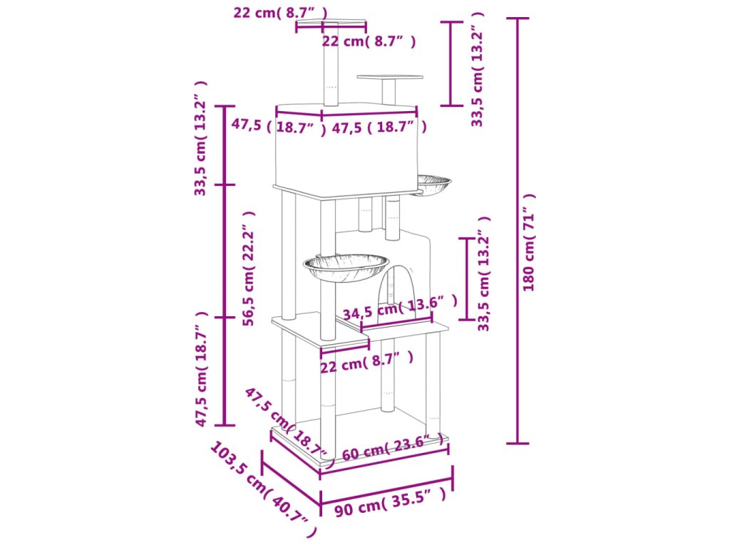 - Všestranná věž pro kočky: Víceúrovňový nábytek pro kočky je navržen se 2 domečky, 2 koši a plošinami, které poskytují kočkám ideální místo pro šplhání, sezení, škrábání, schovávání se a také k odpočinku.