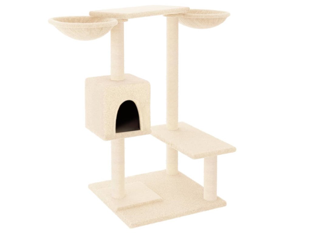 - Přírodní sisalové sloupky: Odolné a pevné sloupky s přírodním sisalem tohoto škrabadla dokonale uspokojí škrabací instinkt koček a zabrání jim poškrábat váš nábytek.