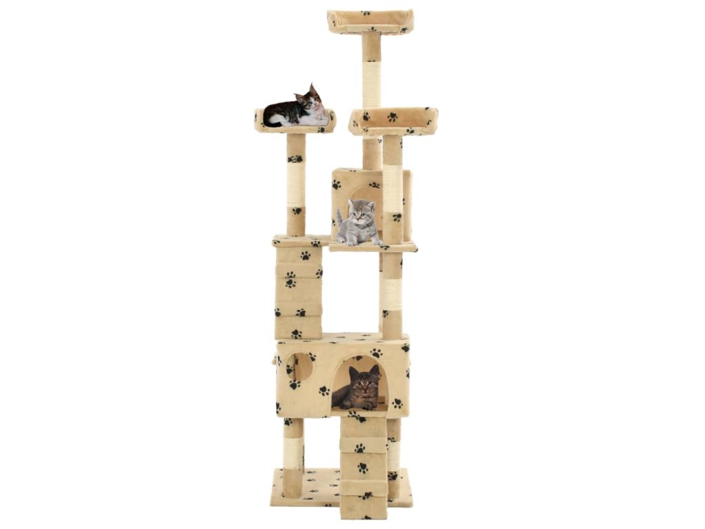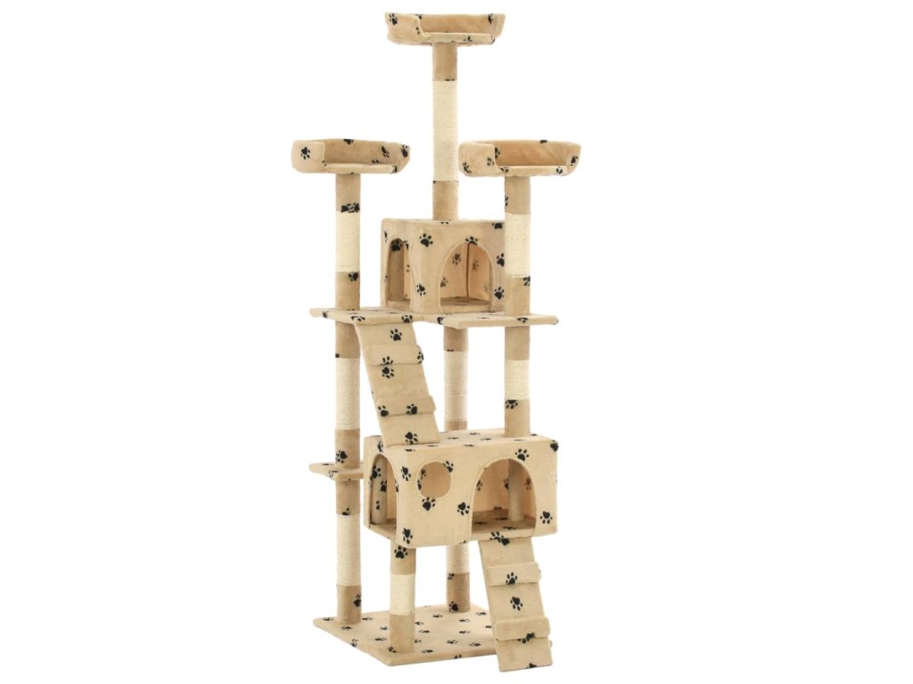 Škrabadlo pro kočky sisalové sloupky 170cm béžové potisk tlapek 170615