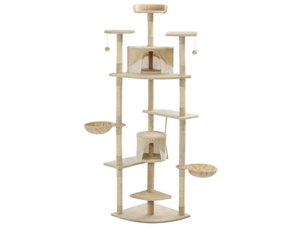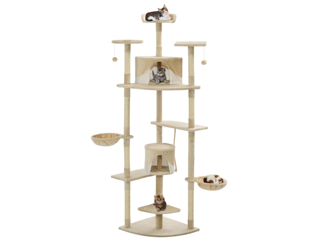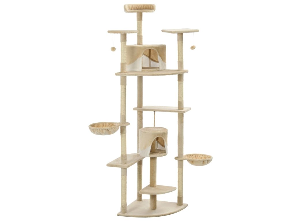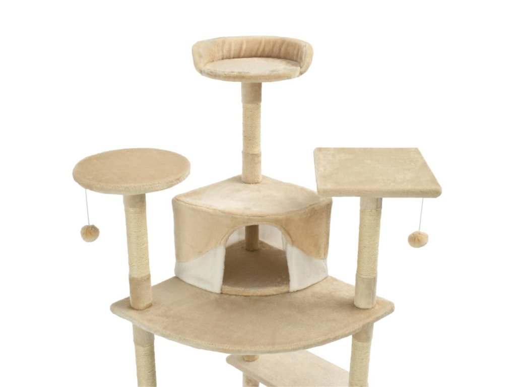 Vaši chlupatí kamarádi si mohou brousit drápky na tomto kočičím škrabadle obaleném sisalovým provázkem, které kočkám dává možnost vybít své přirozené škrabací instinkty. Kočičky se také budou moci po stromě navzájem honit nahoru a dolů. Na vrcholu kočičího stromu jsou 2 zavěšené hračky, které zaujmou všechny zvídavé mazlíčky. Až se vyhrají a vyřádí, vaši kočičí kamarádi si rádi odpočinou na vyšších plošinách, ze kterých budou mít krásný rozhled. Mohou se také ukrýt v útulných domečcích, a dokonce si v nich i zdřímnout, a nebo se uložit k důkladnému spánku do pohodlných košíků.