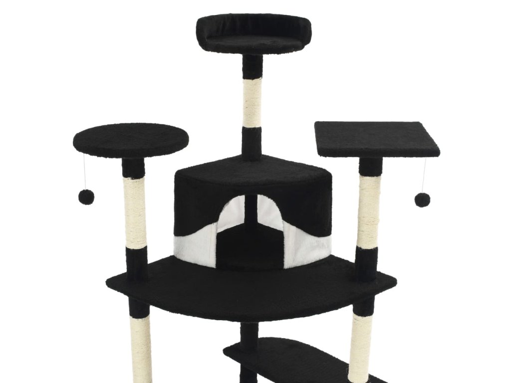 Vaši chlupatí kamarádi si mohou brousit drápky na tomto kočičím škrabadle obaleném sisalovým provázkem, které kočkám dává možnost vybít své přirozené škrabací instinkty. Kočičky se také budou moci po stromě navzájem honit nahoru a dolů. Na vrcholu kočičího stromu jsou 2 zavěšené hračky, které zaujmou všechny zvídavé mazlíčky. Až se vyhrají a vyřádí, vaši kočičí kamarádi si rádi odpočinou na vyšších plošinách, ze kterých budou mít krásný rozhled. Mohou se také ukrýt v útulných domečcích, a dokonce si v nich i zdřímnout, a nebo se uložit k důkladnému spánku do pohodlných košíků.