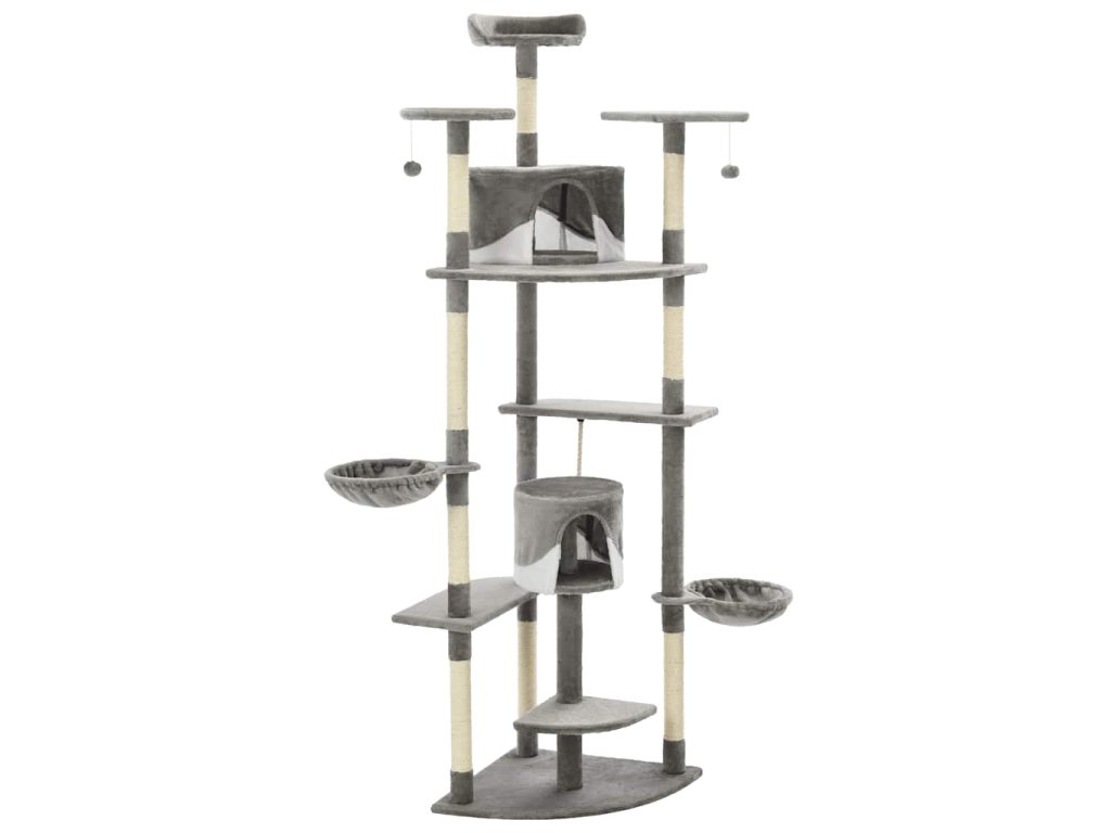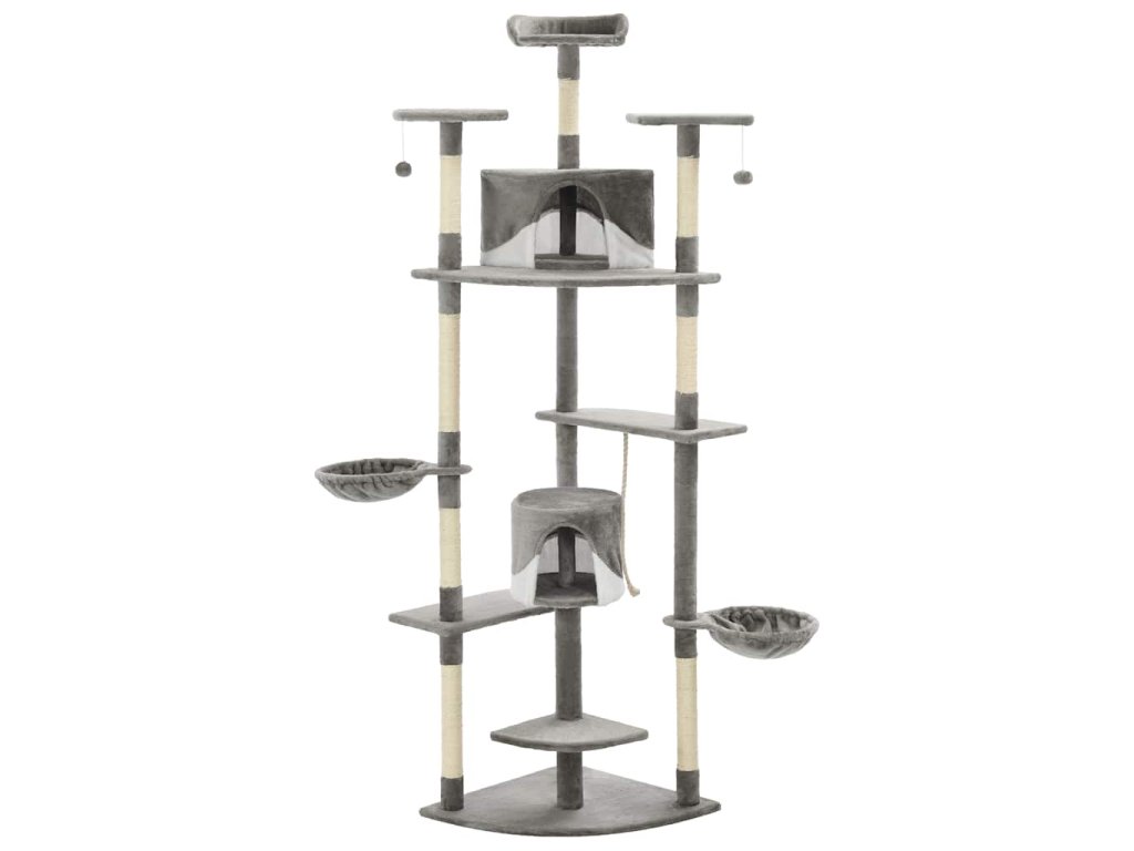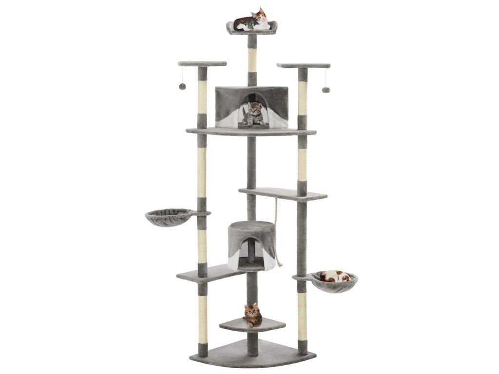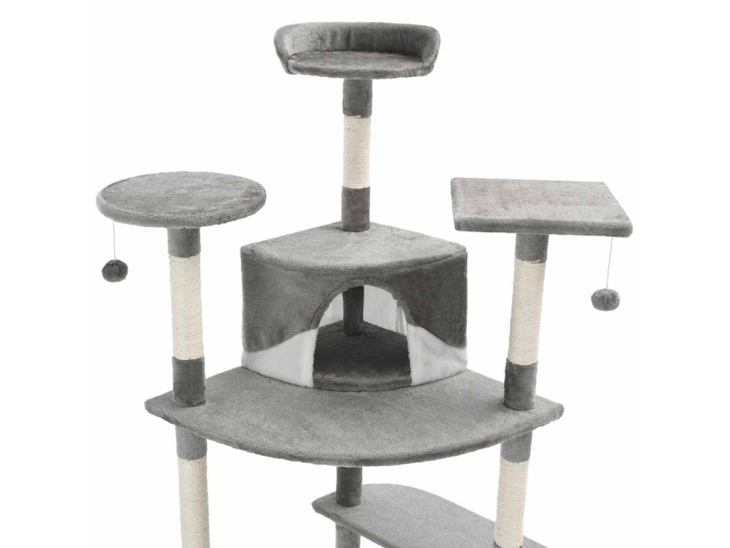 Vaši chlupatí kamarádi si mohou brousit drápky na tomto kočičím škrabadle obaleném sisalovým provázkem, které kočkám dává možnost vybít své přirozené škrabací instinkty. Kočičky se také budou moci po stromě navzájem honit nahoru a dolů. Na vrcholu kočičího stromu jsou 2 zavěšené hračky, které zaujmou všechny zvídavé mazlíčky. Až se vyhrají a vyřádí, vaši kočičí kamarádi si rádi odpočinou na vyšších plošinách, ze kterých budou mít krásný rozhled. Mohou se také ukrýt v útulných domečcích, a dokonce si v nich i zdřímnout, a nebo se uložit k důkladnému spánku do pohodlných košíků.