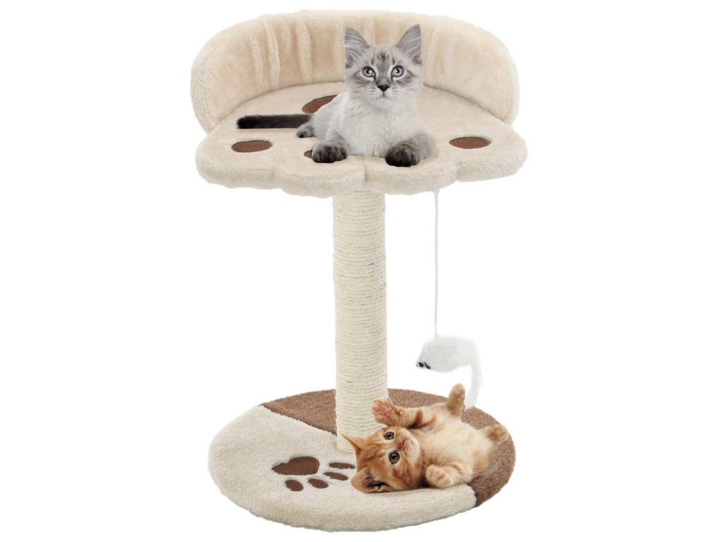 Plyšovým kobercem pokrytý povrch je velmi pohodlný a sloupky škrabadla jsou obalené sisalovým provázkem. Škrabadlo má závěsnou kuličku a místa pro odpočinek, takže se váš čtyřnohý kamarád nebude nikdy nudit. Podstavec je robustní a stabilní. Škrabadlo je vhodné pro koťata.