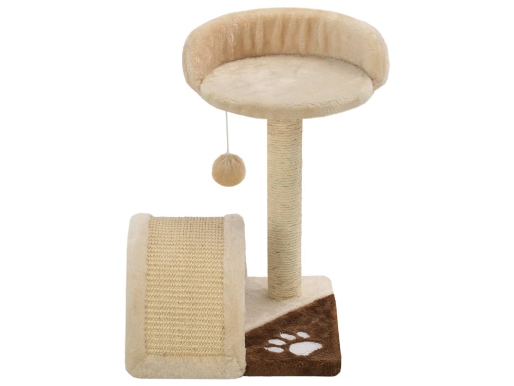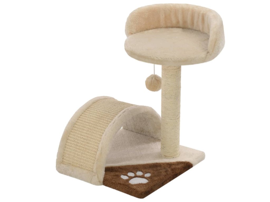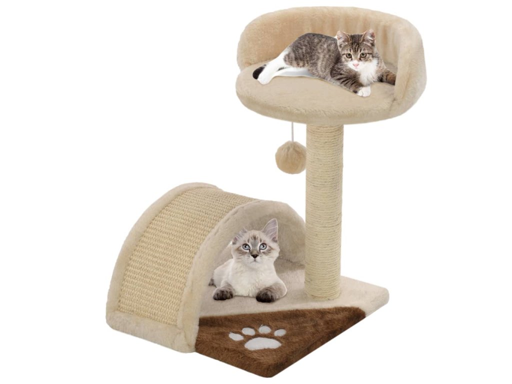 Plyšem pokrytý povrch je velmi pohodlný a sloupek škrabadla je obalen sisalovým provázkem. Aby se váš malý kamarád zabavil, najde zde zavěšený míček a místa k odpočinku. Vaše koťátko si dokonce může hrát na veselou schovávanou. Základna je robustní a stabilní. Škrabadlo je vhodné pro koťata.