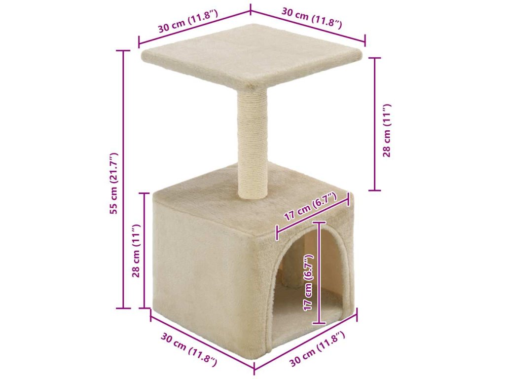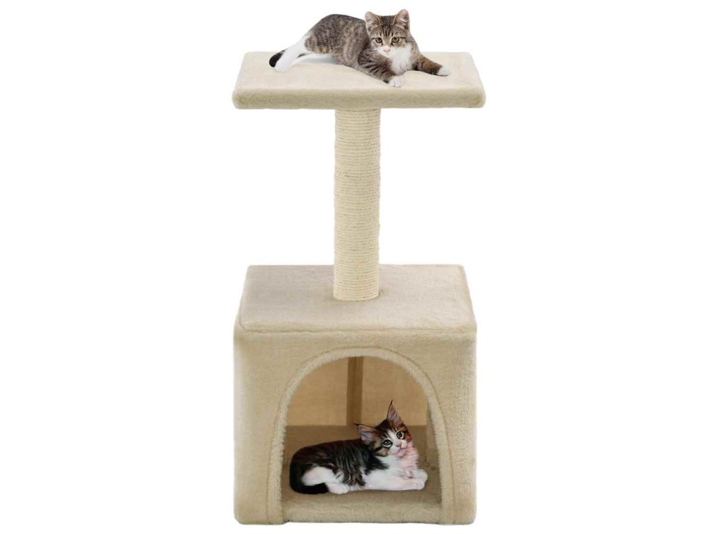 Plyšovým kobercem pokrytý povrch je velmi pohodlný a sloupek škrabadla je obalený sisalovým provázkem. Škrabadlo má pohodlný domeček a plošinu na pozorování okolí, aby udrželo vaše kočky stále zabavené. Podstavec je robustní a stabilní. Je vhodné pro koťata.