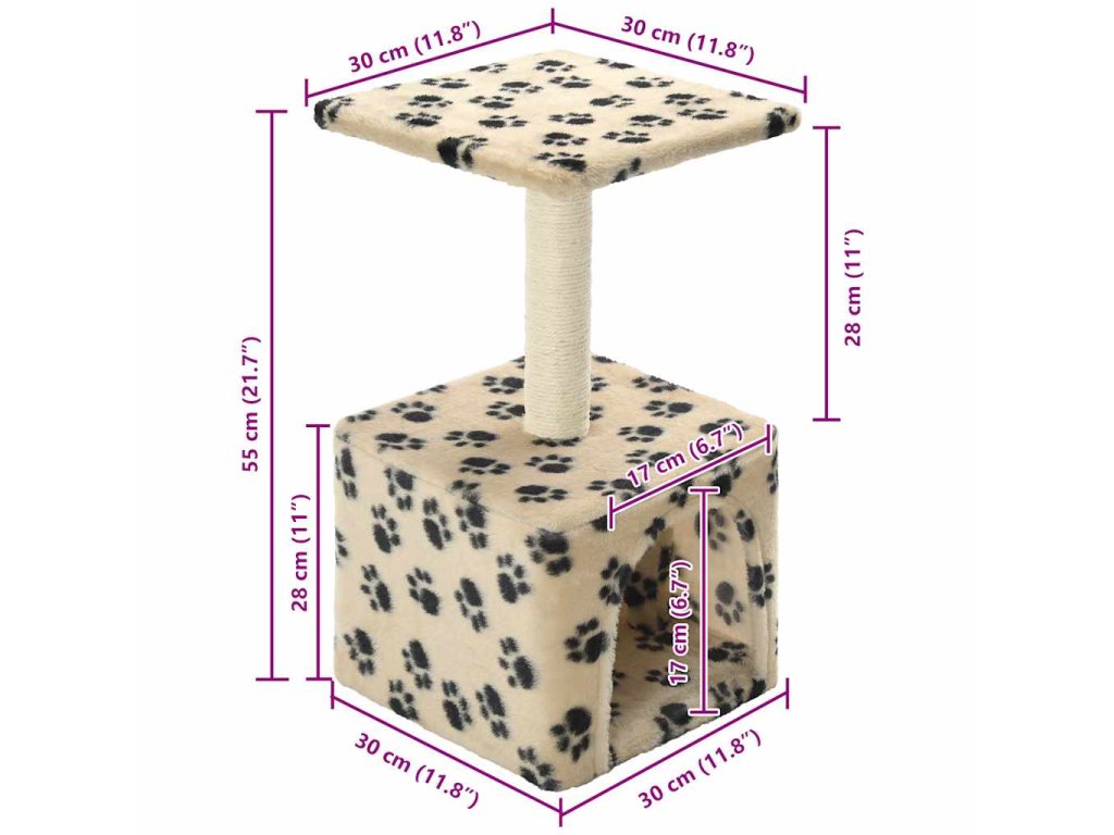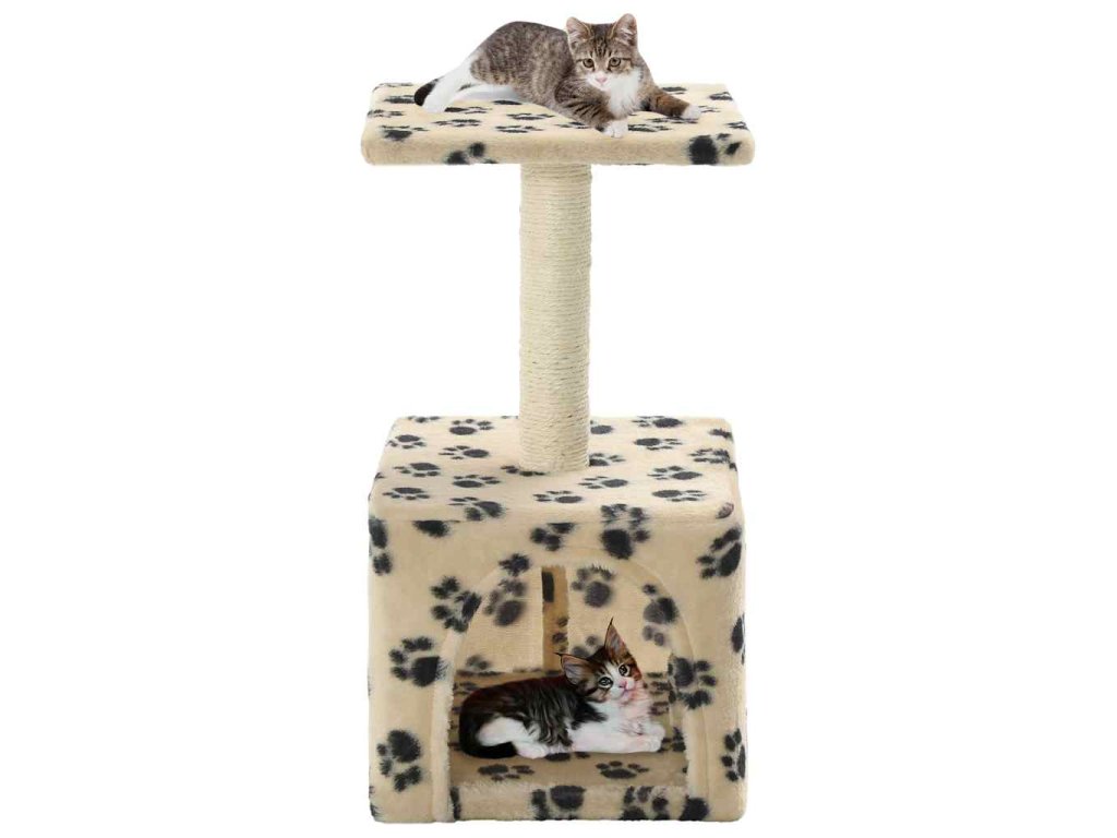 Plyšovým kobercem pokrytý povrch je velmi pohodlný a sloupek škrabadla je obalený sisalovým provázkem. Škrabadlo má pohodlný domeček a plošinu na pozorování okolí, aby udrželo vaše kočky stále zabavené. Podstavec je robustní a stabilní. Je vhodné pro koťata.