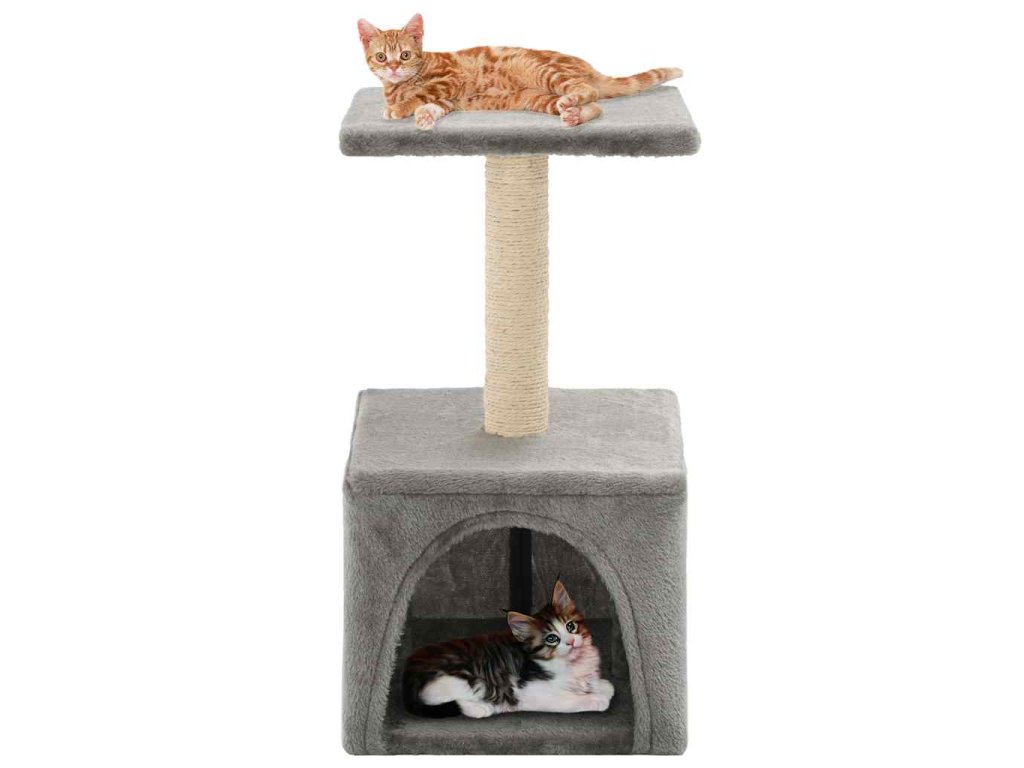 Plyšovým kobercem pokrytý povrch je velmi pohodlný a sloupek škrabadla je obalený sisalovým provázkem. Škrabadlo má pohodlný domeček a plošinu na pozorování okolí, aby udrželo vaše kočky stále zabavené. Podstavec je robustní a stabilní. Je vhodné pro koťata.