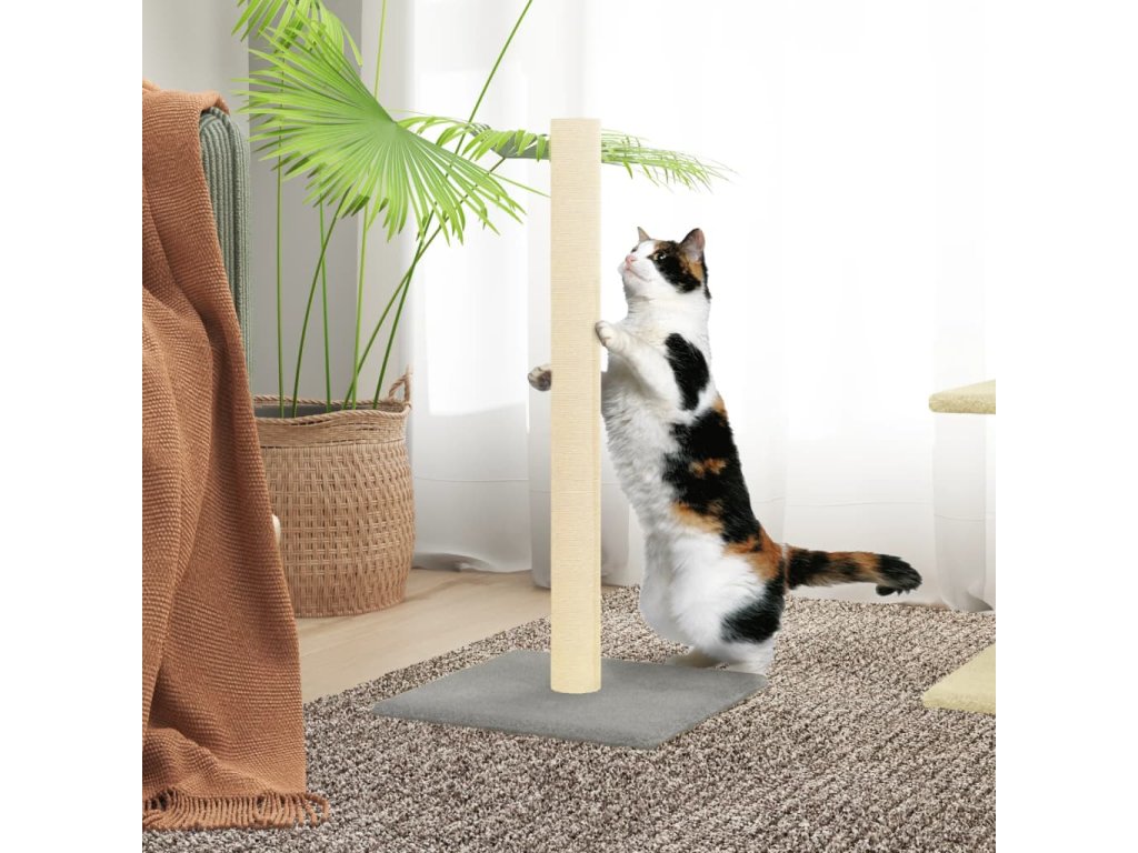 - Sloupek z přírodního sisalu: Odolné a pevné sloupky s přírodním sisalem tohoto škrabadla dokonale uspokojí škrabací instinkt koček a zabrání jim poškrábat váš nábytek.