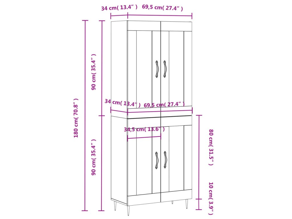 - Rozměry horní části příborníku: 69,5 x 34 x 90 cm (Š x H x V)