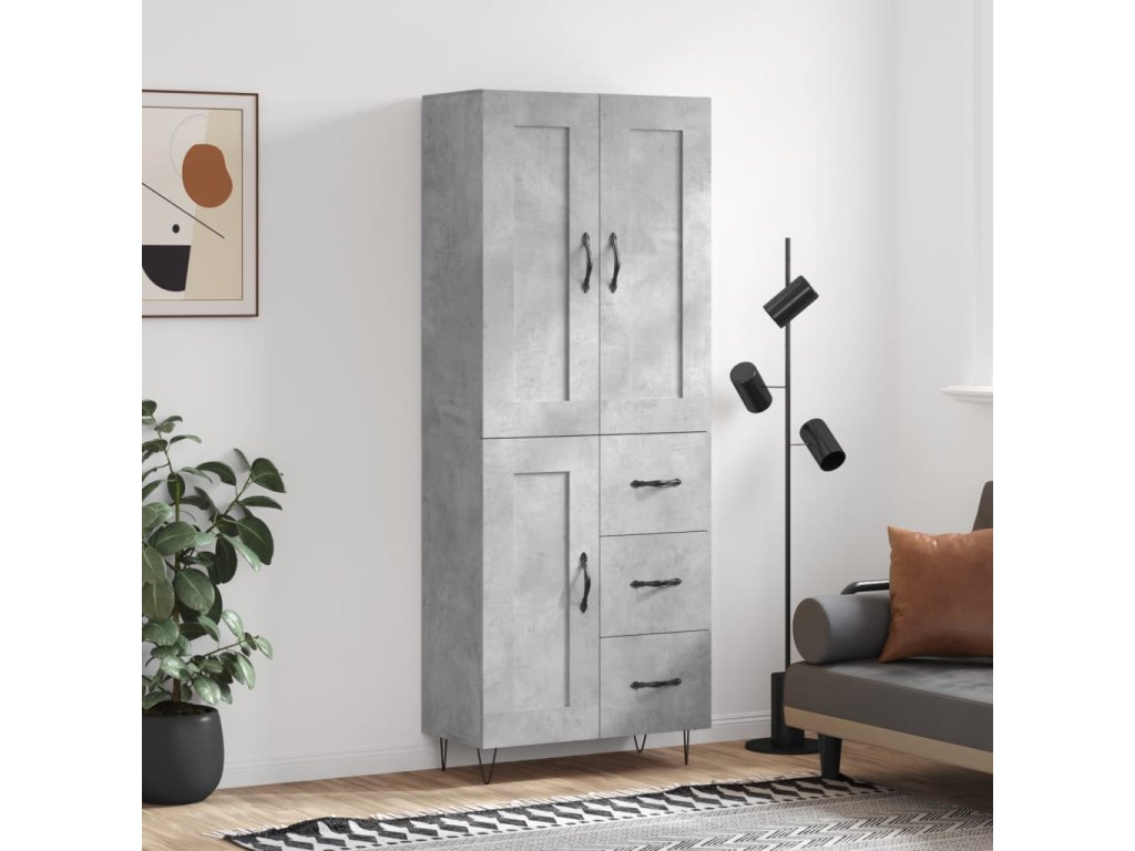 Skříň highboard betonově šedá 69,5x34x180 cm kompozitní dřevo 3200037
