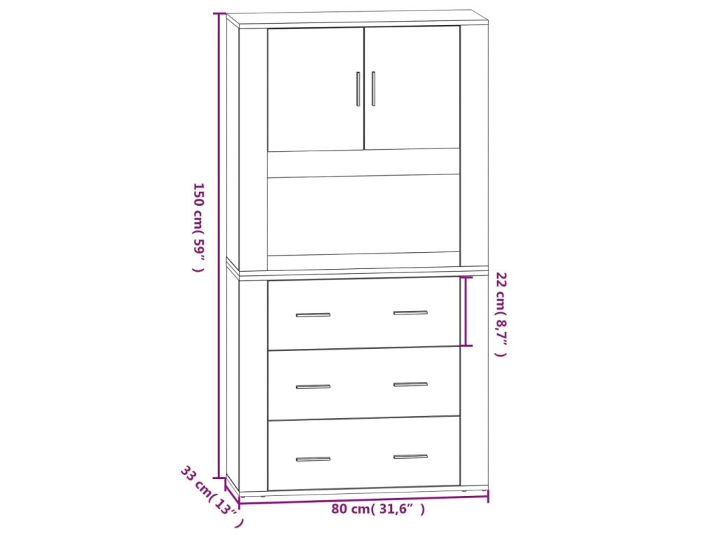 - Rozměry příborníku: 80 x 33 x 70 cm (D x Š x V)