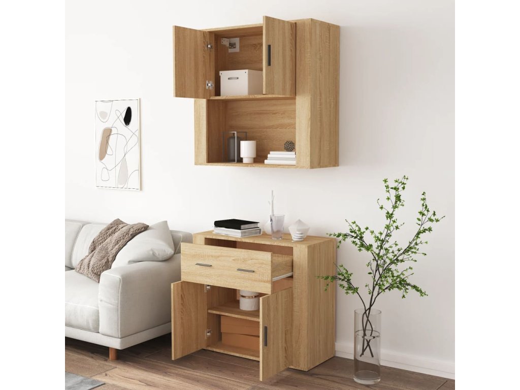 - Montáž na stěnu: Úložnou skříňku lze připevnit na stěnu na horní část příborníku a vytvořit tak vysokou skříň, která šetří místo na podlaze. Tímto způsobem můžete maximalizovat podlahovou plochu a udržet si v místnosti pořádek.