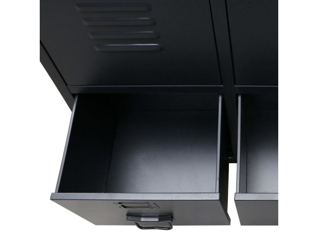 Tato skříň má 2 nastavitelné vnitřní police, které vám umožní přehledně třídit oblečení do různých kategorií, a 2 zásuvky pro ukládání a uspořádání vašich ponožek, spodního prádla apod. Na každých dvířkách se nachází držák na jmenovku a větrací otvory, které jim dodávají industriální vzhled tělocvičebních šaten. Tato úložná skříň je vyrobená z plechu, takže je odolná a snadno se čistí. Montáž je snadná.