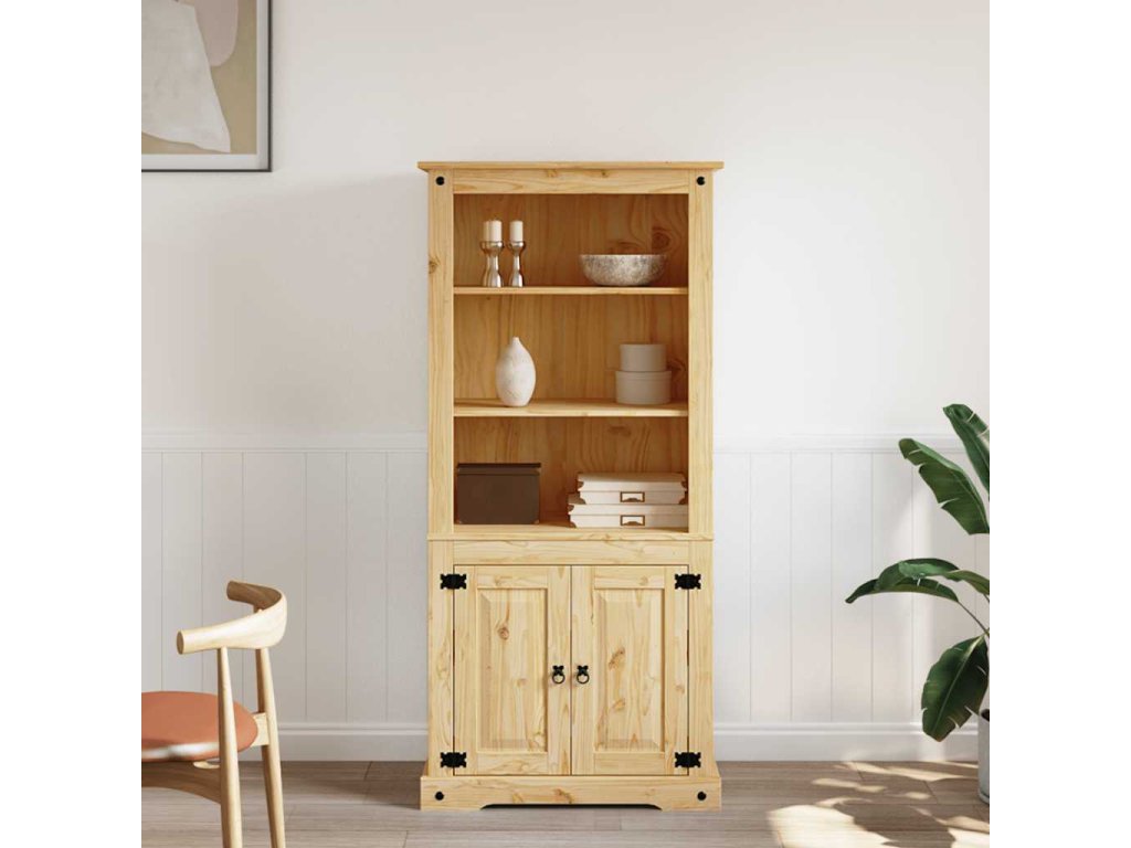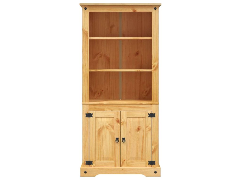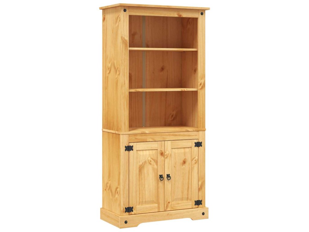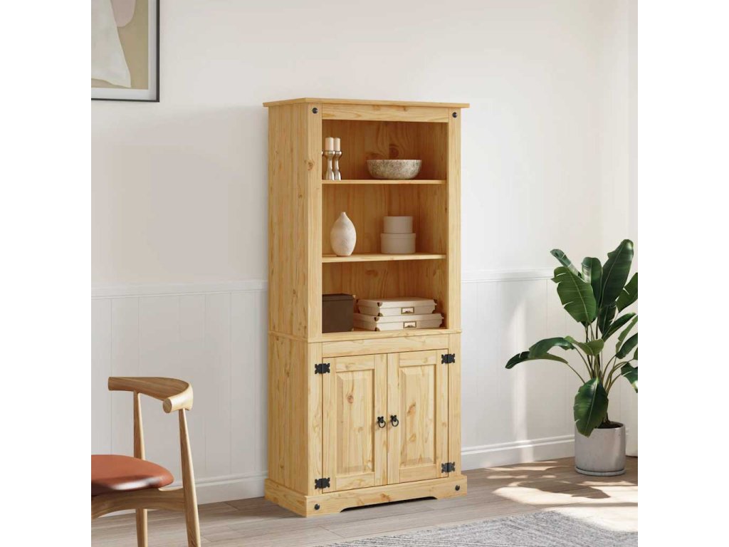 Skříň je vyrobená z masivního borového dřeva, je tudíž pevná a robustní. 3 otevřené police v horní části jsou ideální pro ukládání knih, skleniček nebo dekorativních předmětů. Ve spodní skříňce jsou dvě police a najdete v ní spoustu úložného prostoru.