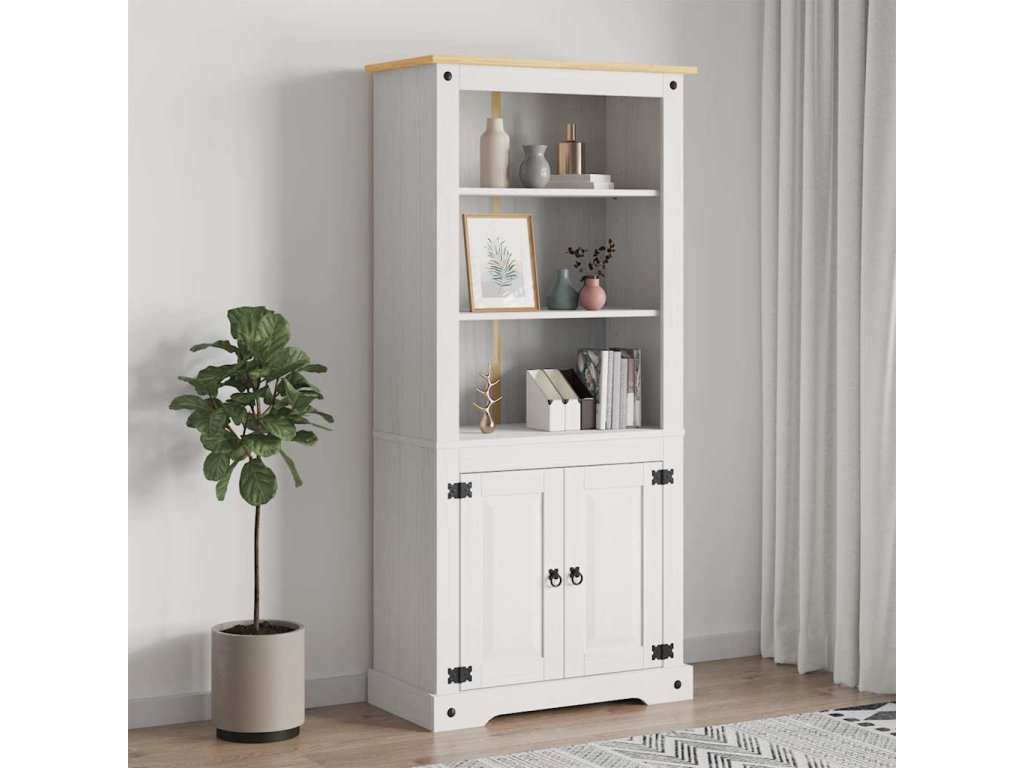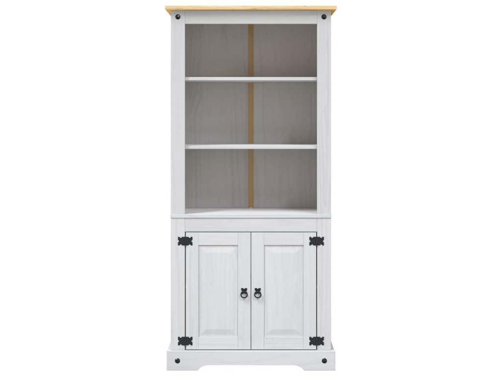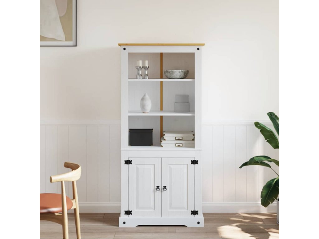 Skříň je vyrobená z masivního borového dřeva, je tudíž pevná a robustní. 3 otevřené police v horní části jsou ideální pro ukládání knih, skleniček nebo dekorativních předmětů. Ve spodní skříňce jsou dvě police a najdete v ní spoustu úložného prostoru.