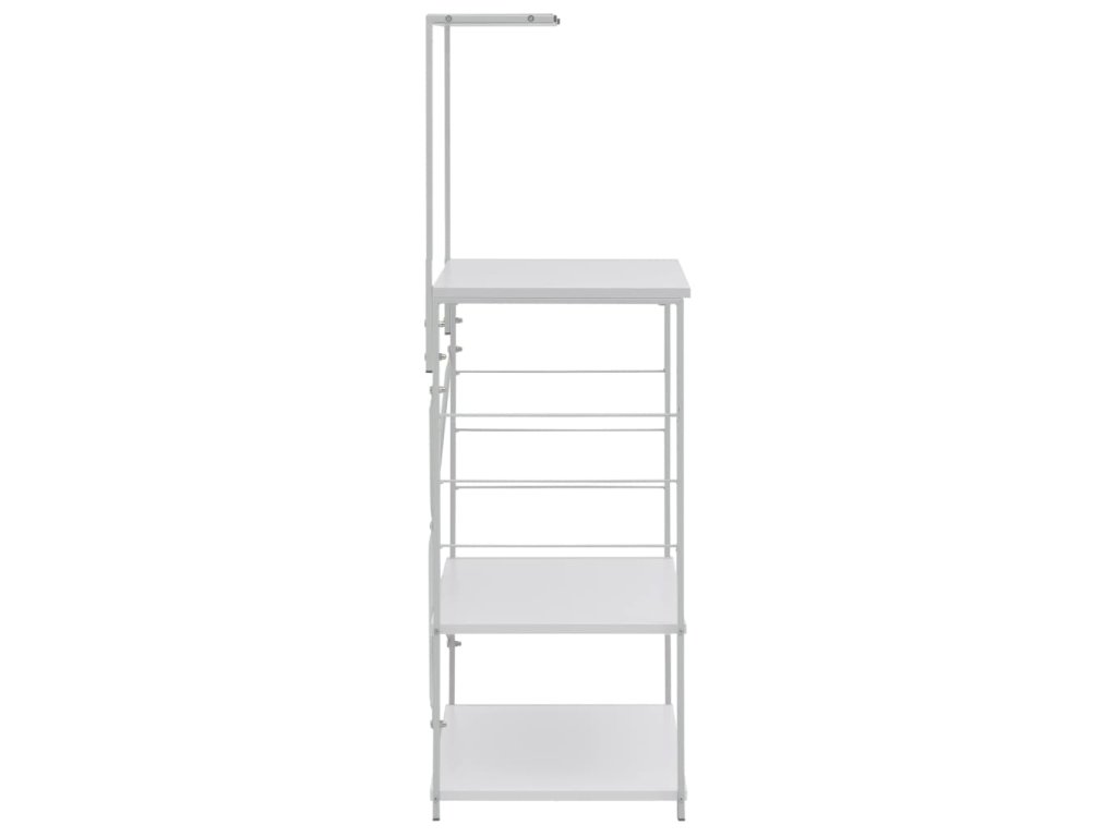 Tato kuchyňská police je zhotovená z kompozitního dřeva, takže se snadno čistí vlhkým hadříkem. Robustní ocelová konstrukce je antikorozní a přispívá k její robustnosti. Tento regál má 4 úrovně, které vám poskytnou dostatek prostoru pro ukládání věcí, jako jsou toustovače, koření, talíře a cokoli dalšího. Na boku skříňky jsou háčky pro zavěšení různého kuchyňského náčiní. Můžete ji také použít v obývacím pokoji nebo kanceláři k vystavení svých sběratelských předmětů, zarámovaných fotografií atd.