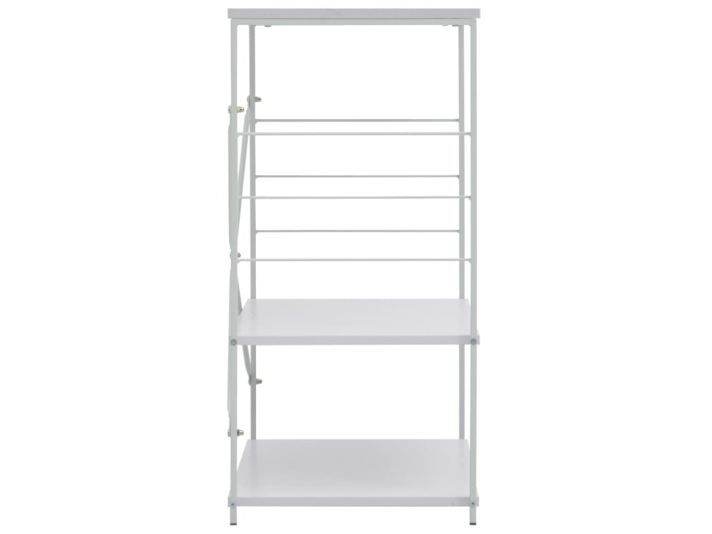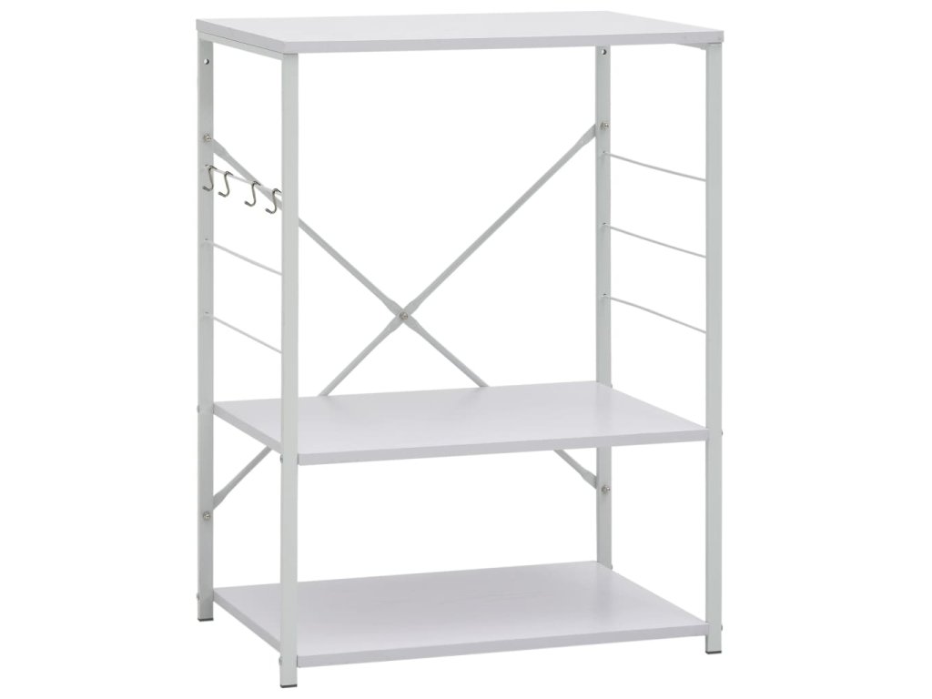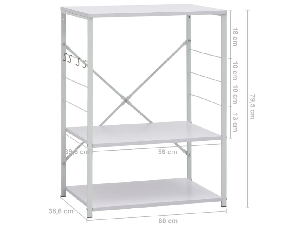 Tato kuchyňská police je zhotovená z kompozitního dřeva, takže se snadno čistí vlhkým hadříkem. Ocelová konstrukce je antikorozní a přispívá k její robustnosti. Tento regál má 3 úrovně, které vám poskytnou dostatek prostoru pro ukládání věcí. Na boku skříňky jsou háčky pro zavěšení hrnců, pánví, nádobí, kuchyňských chňapek a spoustu dalšího. Můžete ji také použít v obývacím pokoji nebo kanceláři k vystavení svých sběratelských předmětů, zarámovaných fotografií atd.