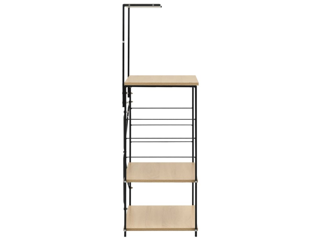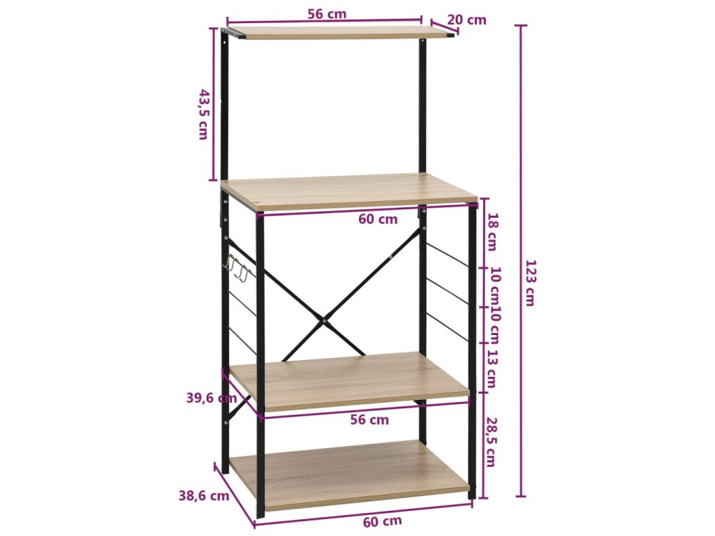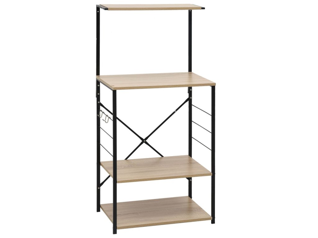 Tato kuchyňská police je zhotovená z kompozitního dřeva, takže se snadno čistí vlhkým hadříkem. Robustní ocelová konstrukce je antikorozní a přispívá k její robustnosti. Tento regál má 4 úrovně, které vám poskytnou dostatek prostoru pro ukládání věcí, jako jsou toustovače, koření, talíře a cokoli dalšího. Na boku skříňky jsou háčky pro zavěšení různého kuchyňského náčiní. Můžete ji také použít v obývacím pokoji nebo kanceláři k vystavení svých sběratelských předmětů, zarámovaných fotografií atd.