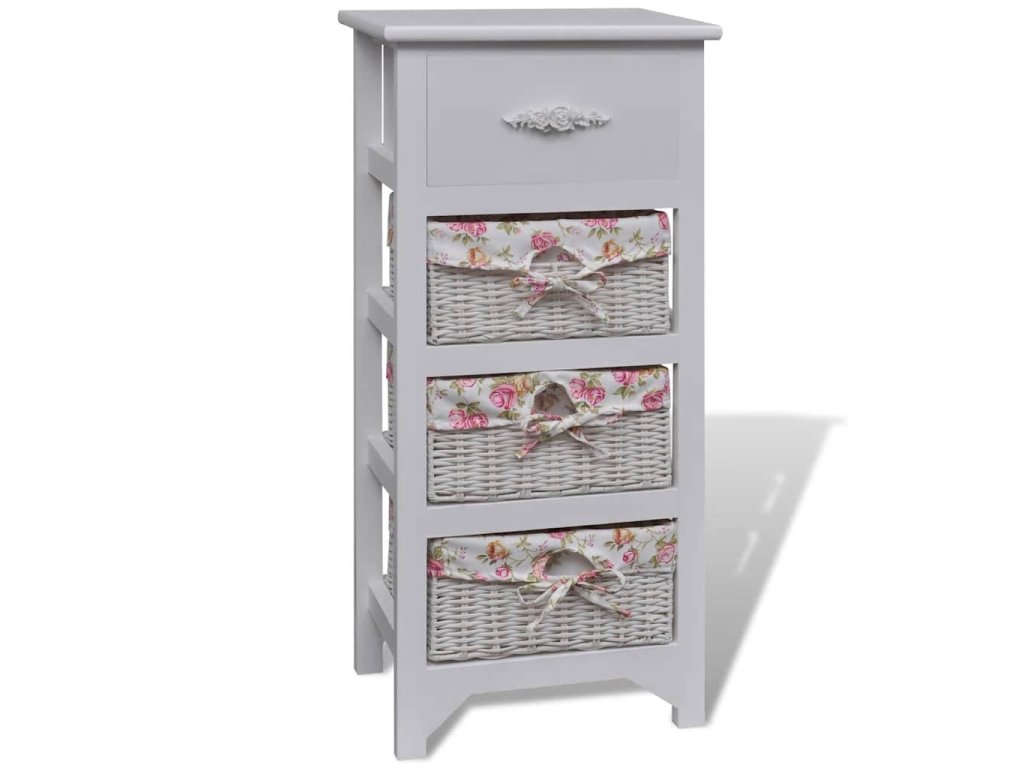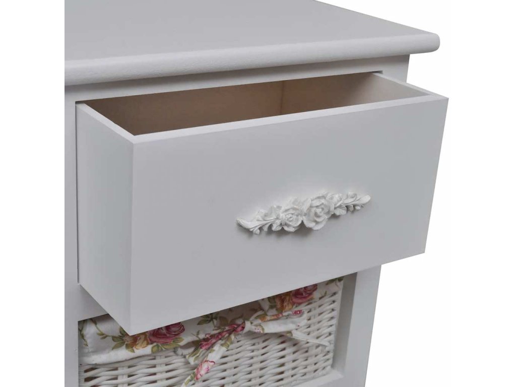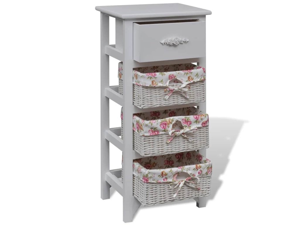 Tato dřevěná skříňka s jednou zásuvkou a třemi košíky je zhotovena z vysoce kvalitního dřeva a pyšní je jedinečným, ale přesto stylovým designem. Nejenže poslouží k uschování vašich věcí, ale také dodá vašemu interiéru romantický nádech.