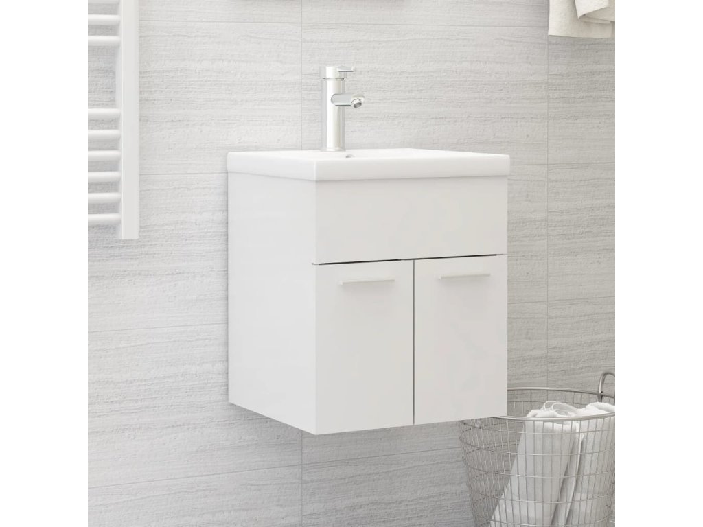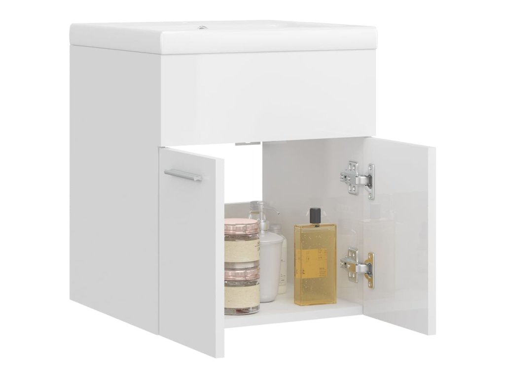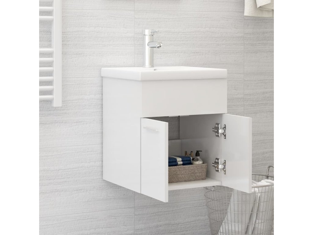 Skříňka se zápustným umyvadlem bílá lesklá kompozitní dřevo 3070817