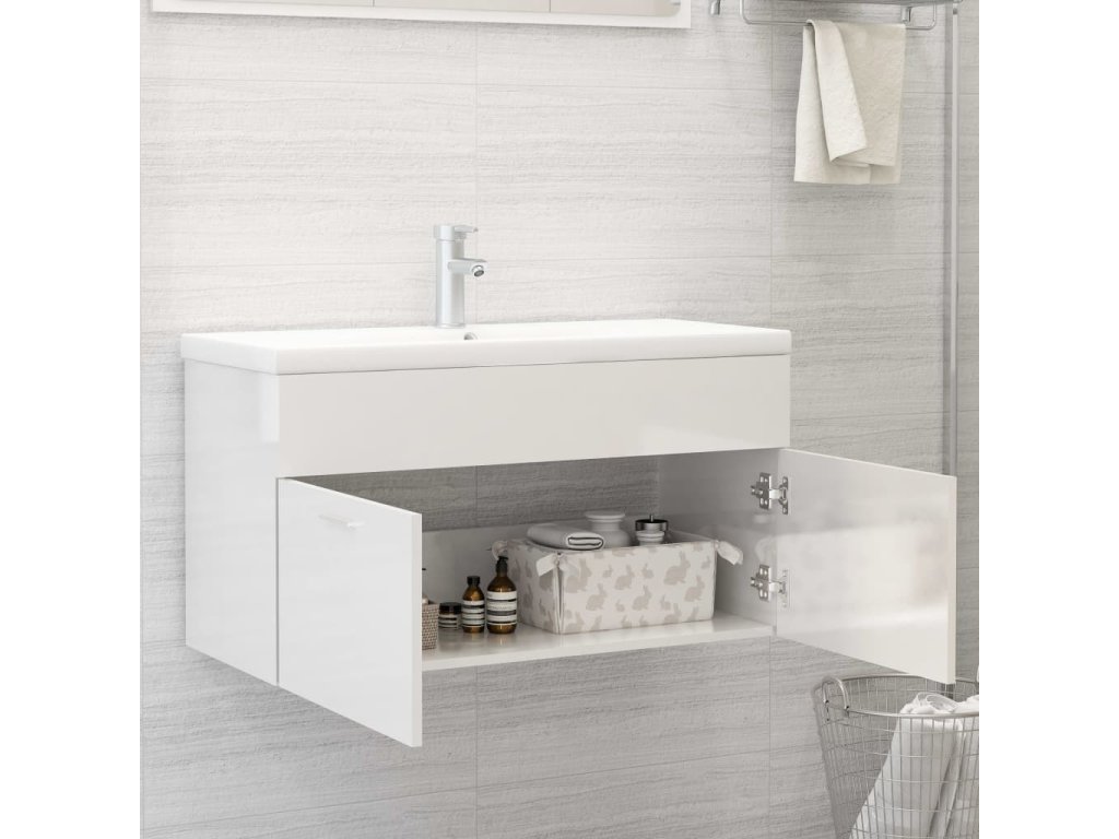Skříňka se zápustným umyvadlem bílá lesklá kompozitní dřevo 3070844