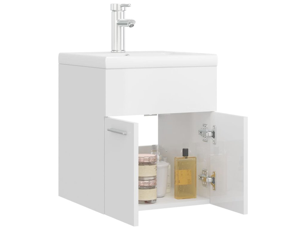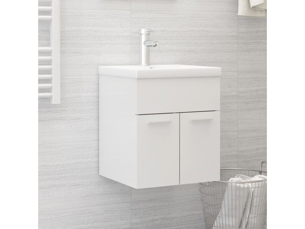 Skříňka se zápustným umyvadlem bílá lesklá kompozitní dřevo 3071267
