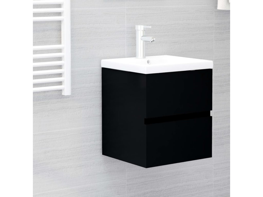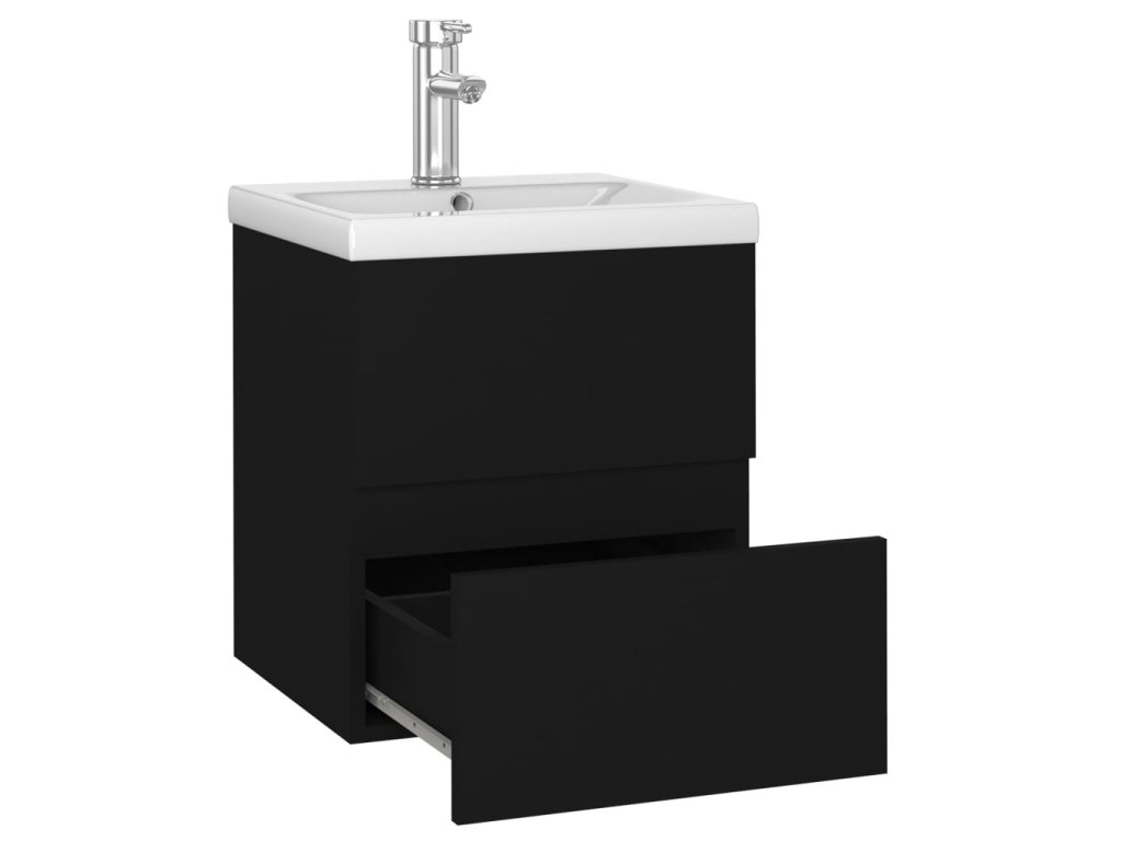 Skříňka se zápustným umyvadlem černá kompozitní dřevo 3071622