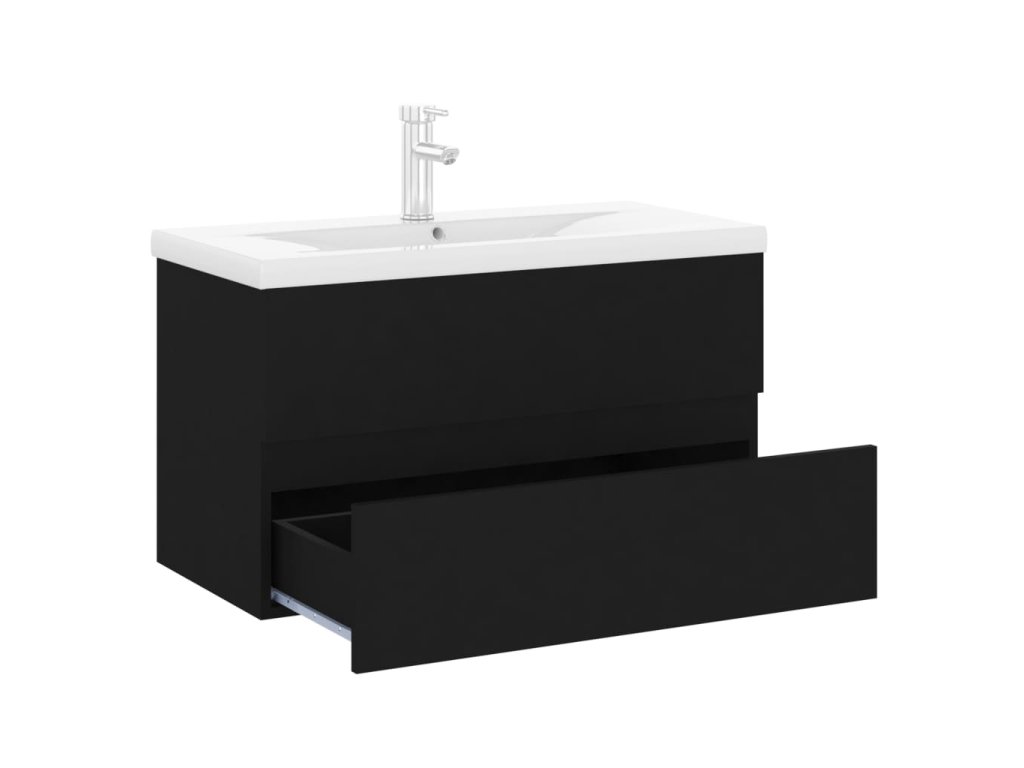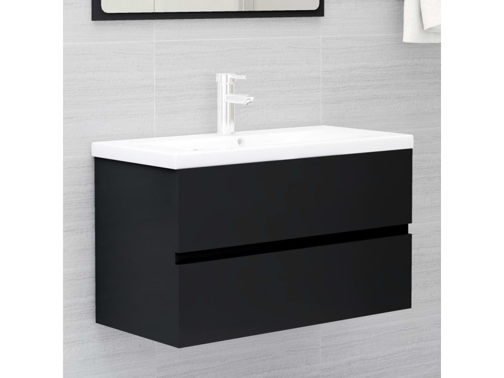 Skříňka se zápustným umyvadlem černá kompozitní dřevo 3071640