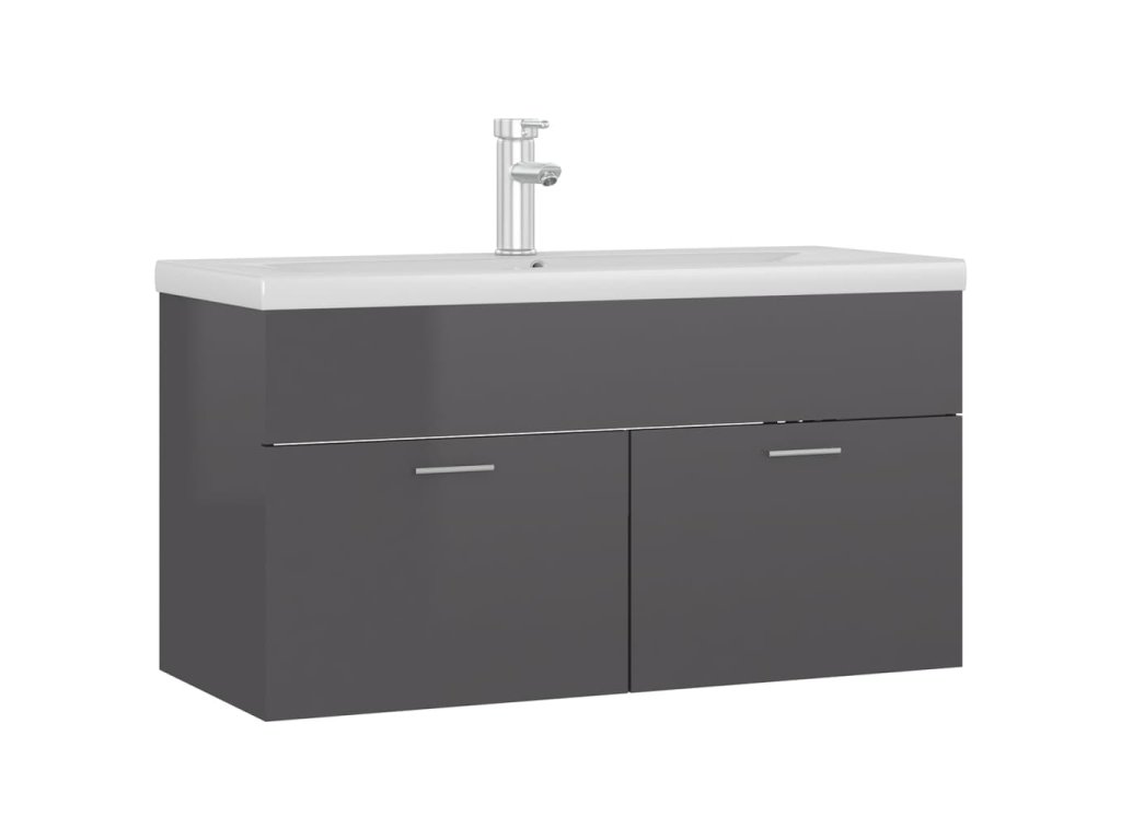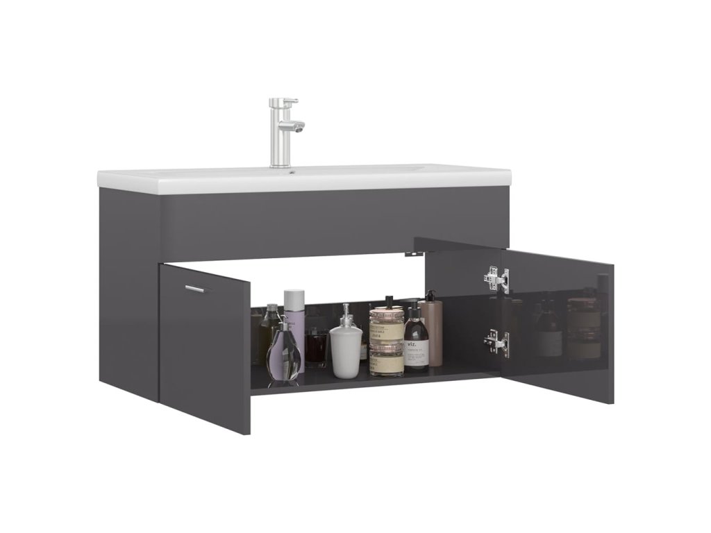 Skříňka se zápustným umyvadlem šedá lesklá kompozitní dřevo 3071296