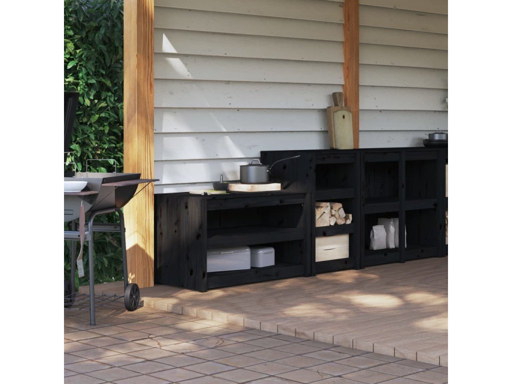 Skříňky do venkovní kuchyně 2 ks černé masivní borové dřevo 3196132